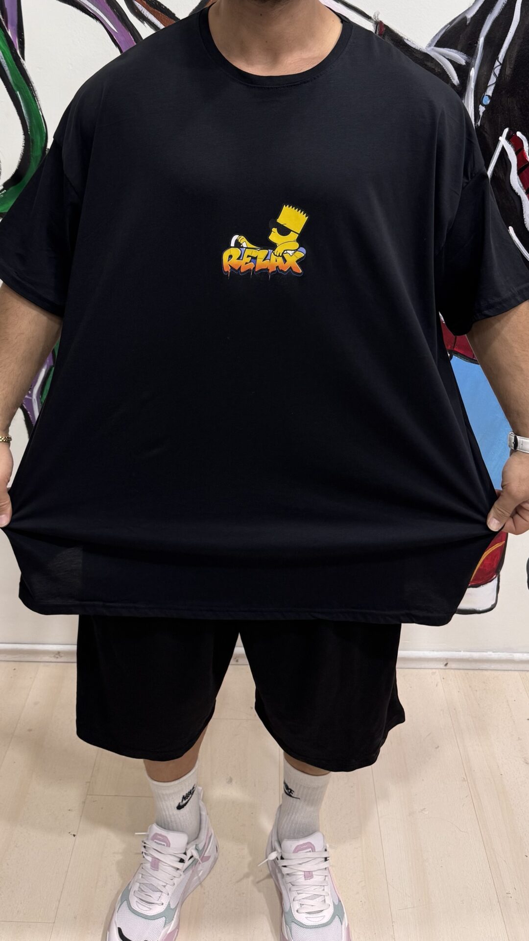 Simpson Baskılı Siyah Büyük Beden Bisiklet Yaka Tişört