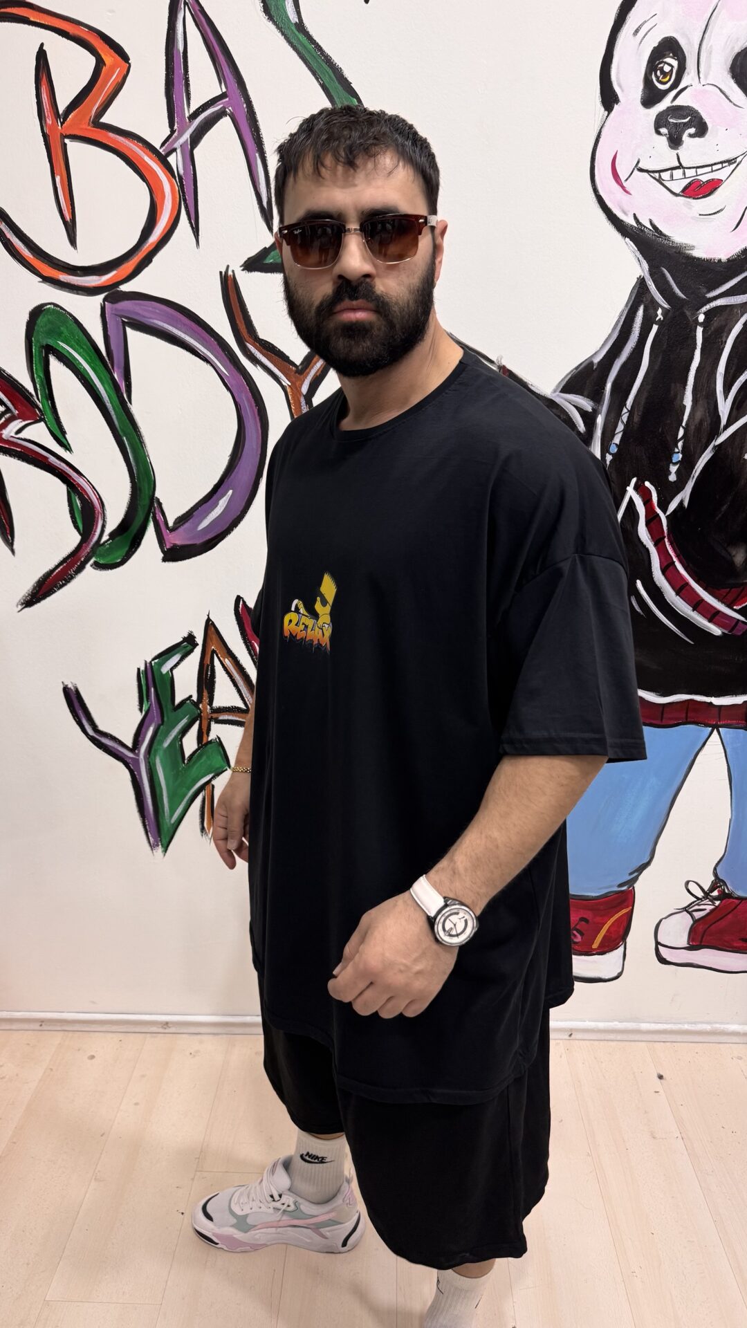 Büyük Beden 9 Numara Baskılı Siyah Oversize Kısa Kol Tişört