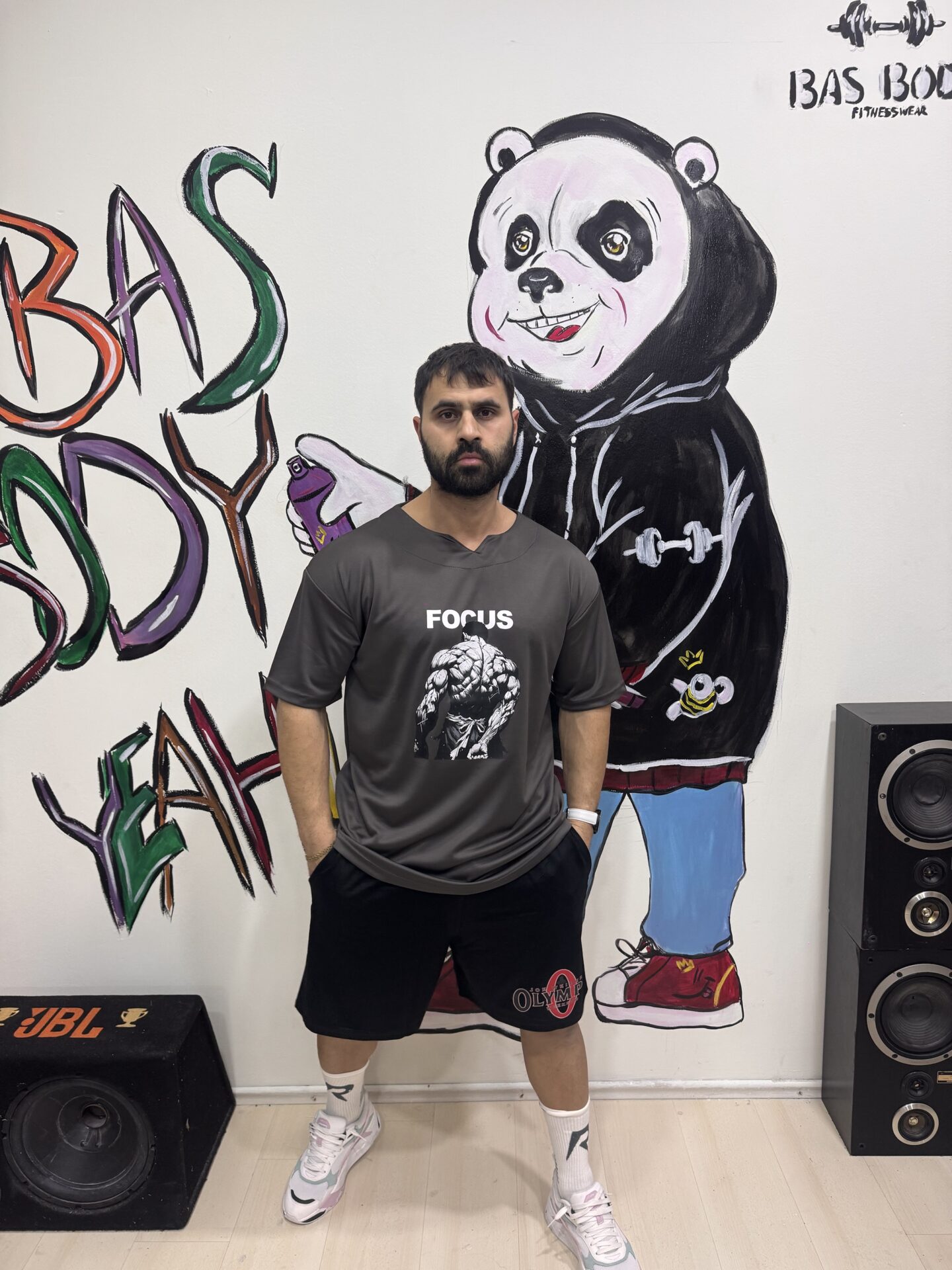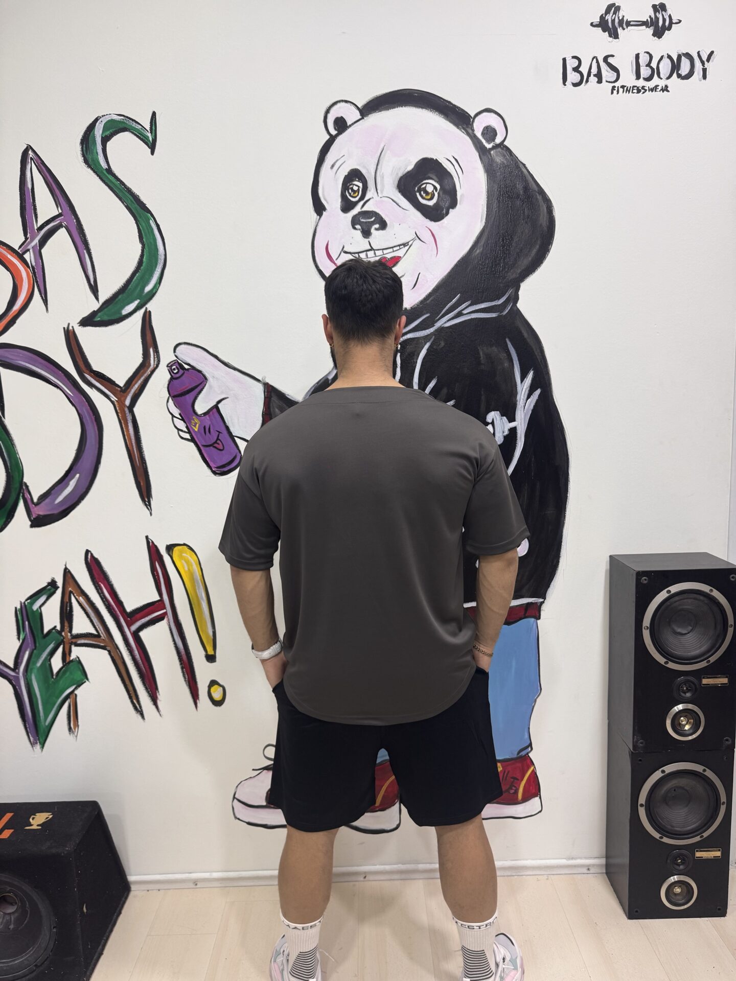 Gri Delikli Kumaş Focus Baskıı Relaxx Model Fitness Oversize Antrenman Tişörtü