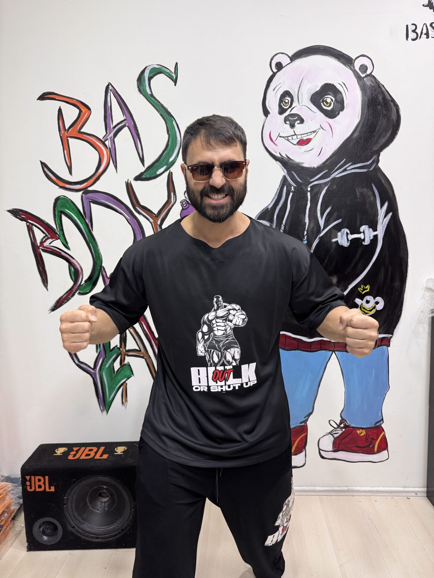 Hulk Baskılı Siyah Delikli Kumaş Relaxx Model Fitness Spor Tişört