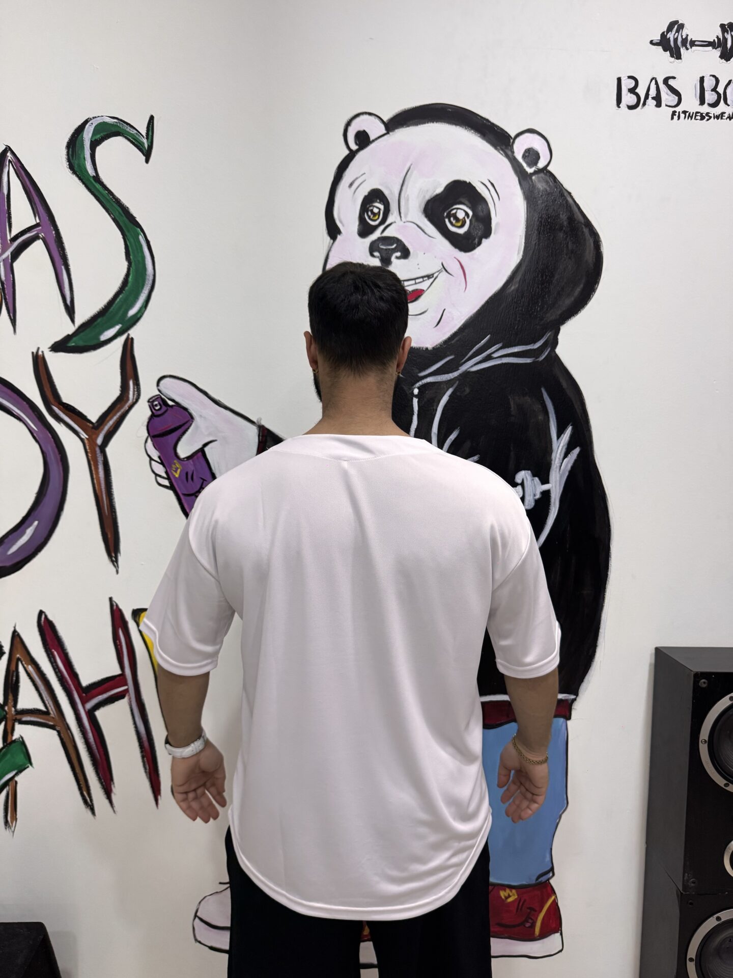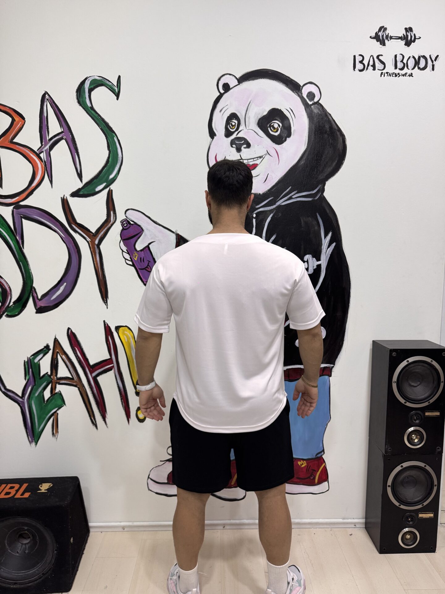 Relax Model Bas Body Logolu Beyaz Delikli Kumaş Fitness Spor Tişört