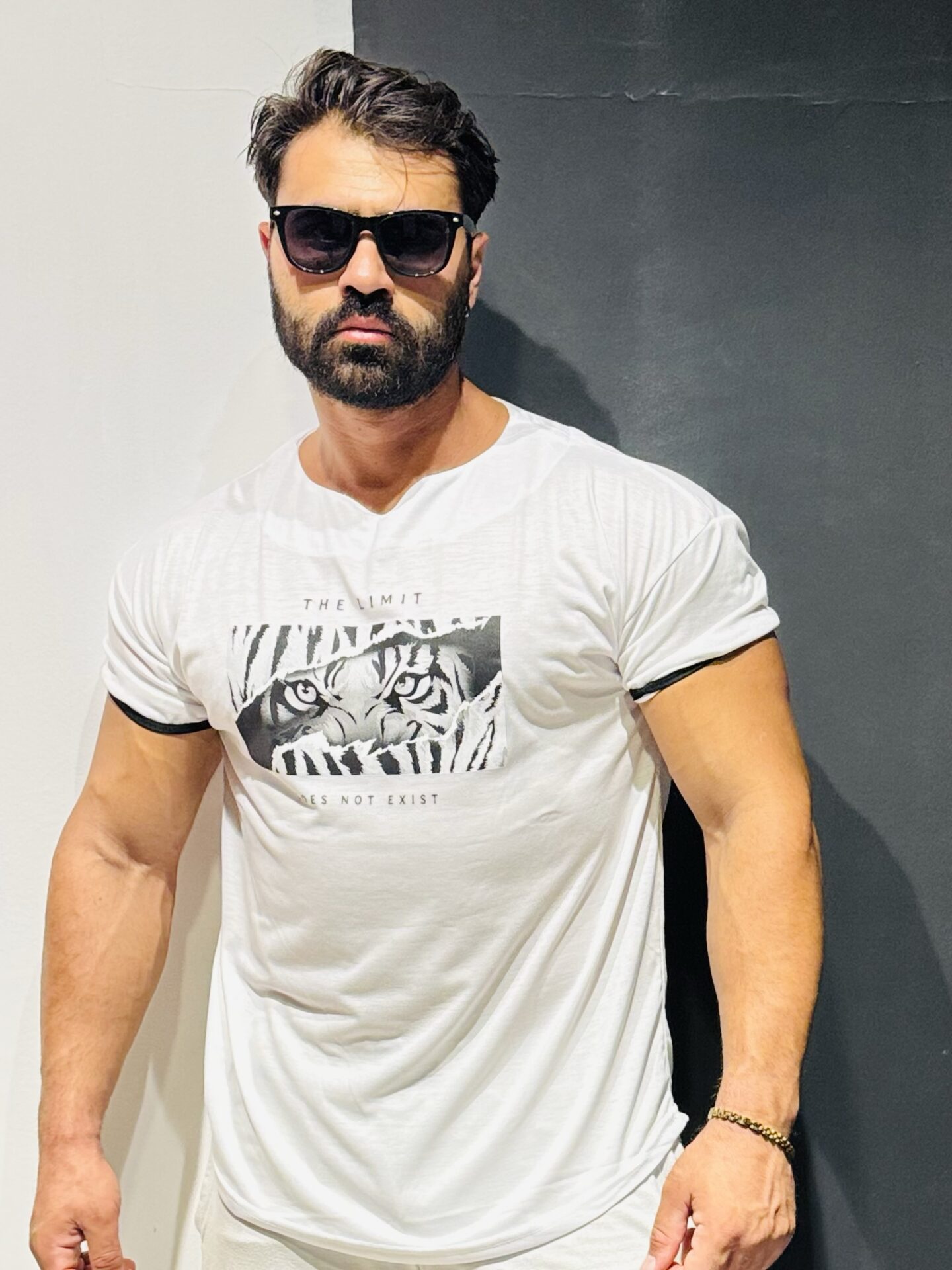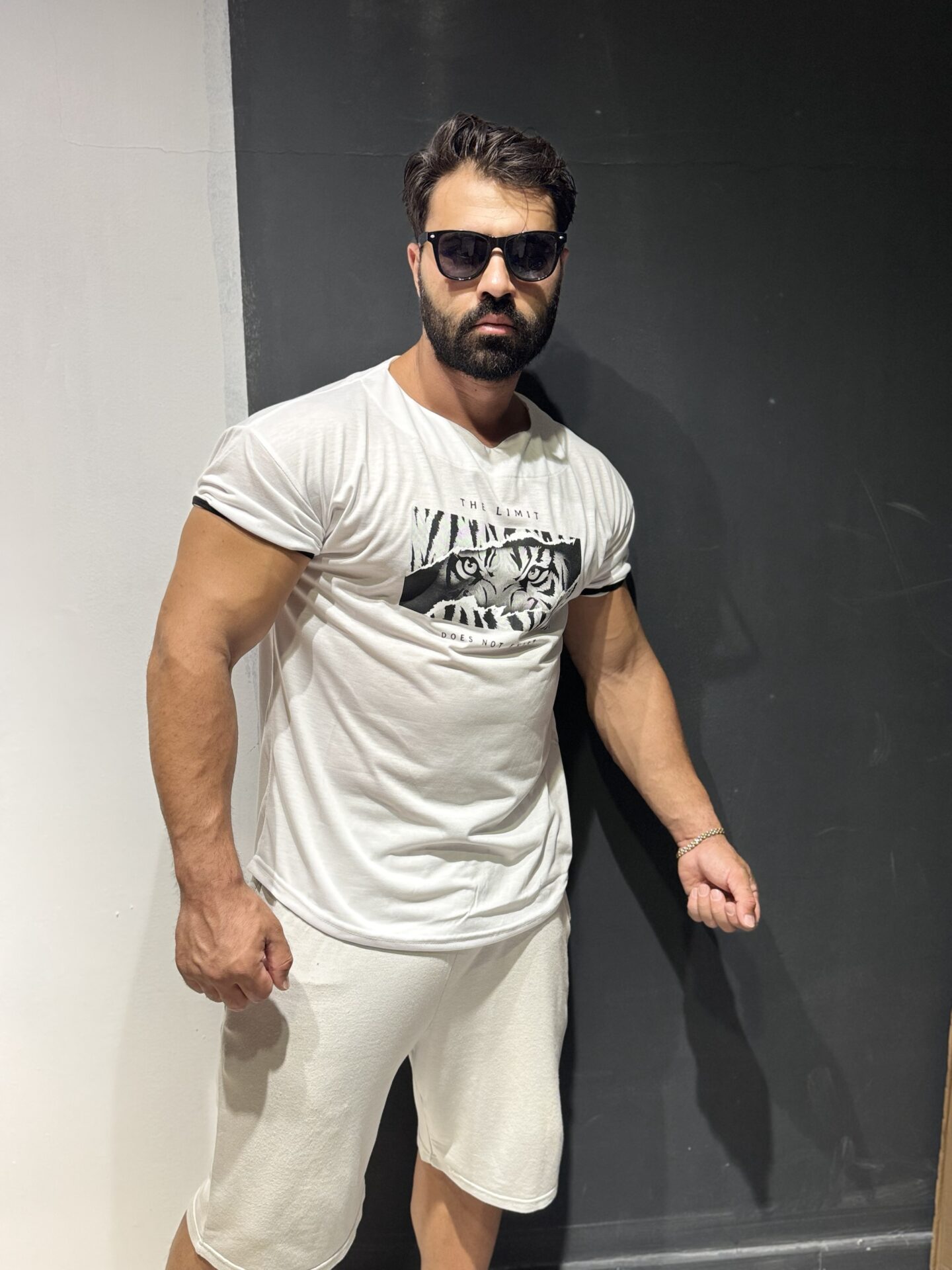 Beyaz Kaplan Baskılı Kollar Dar Oversize Kesim