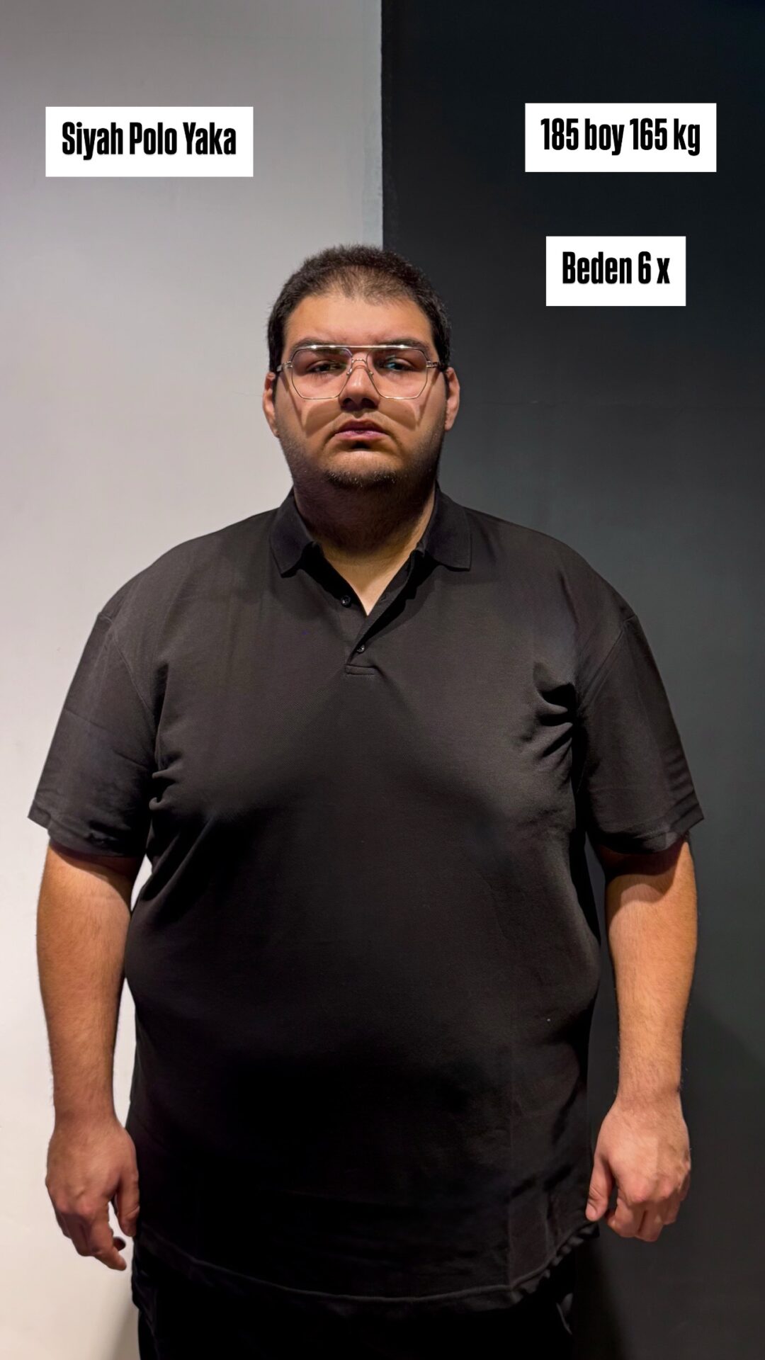 Siyah Premium Battal Polo Yaka Büyük Beden Tişört