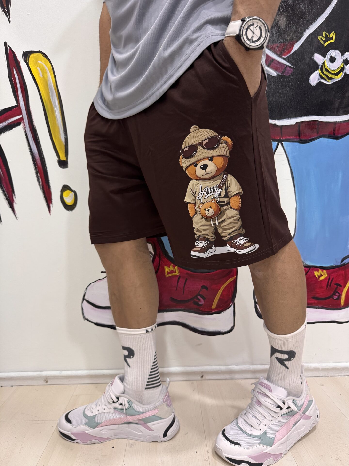 Ayıcık Desenli Fitness Ve Günlük Şort Çift Cepli Likralı Hem Dışarıda Hem de Sporda