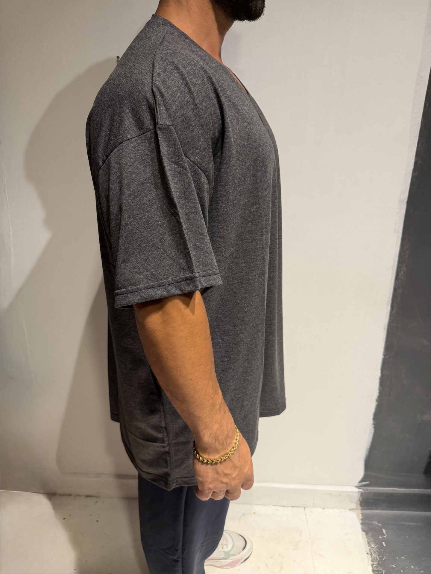 Battal Beden Kısa Kol V Yaka Antrasit Füme Oversize Tişört