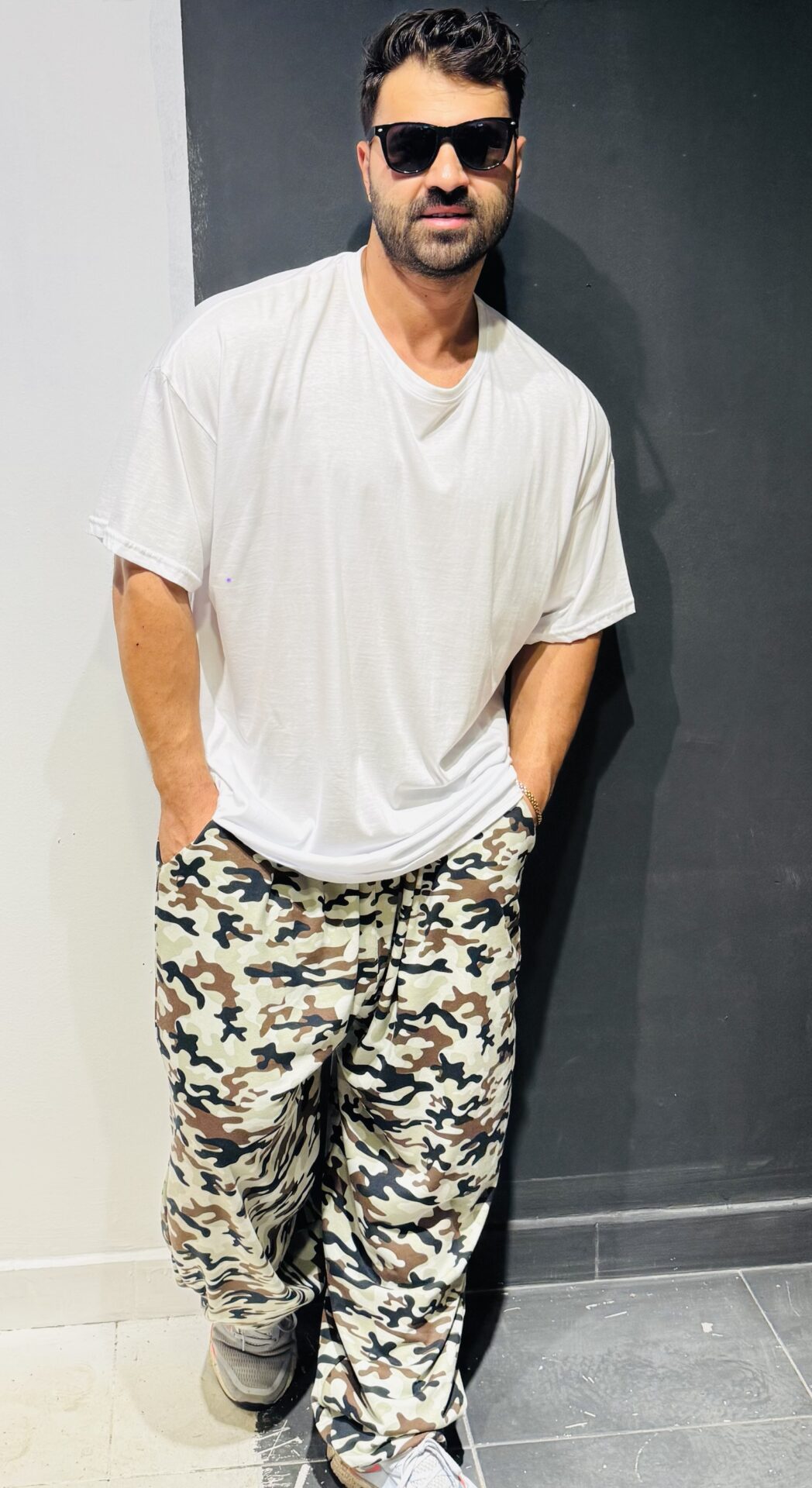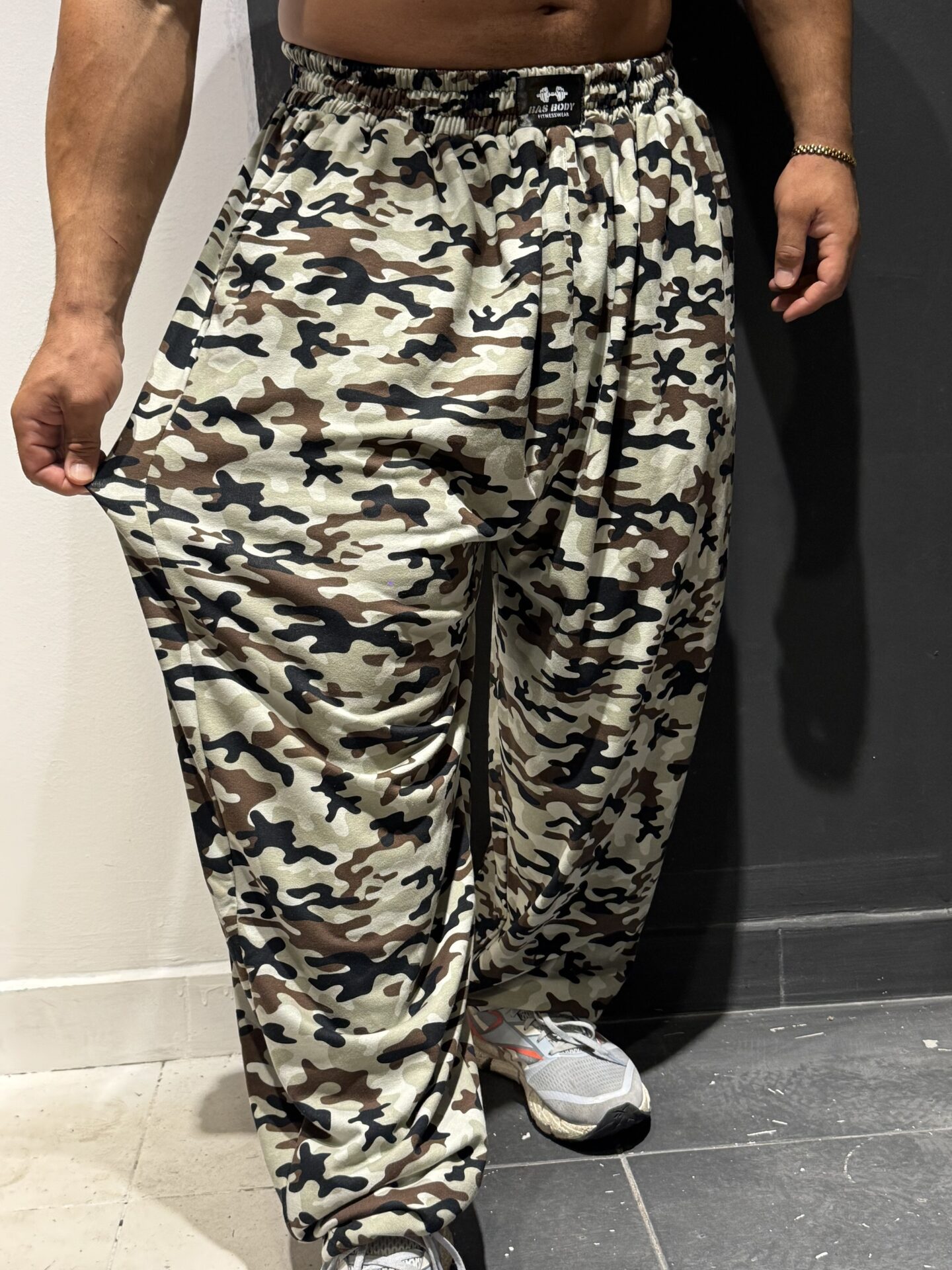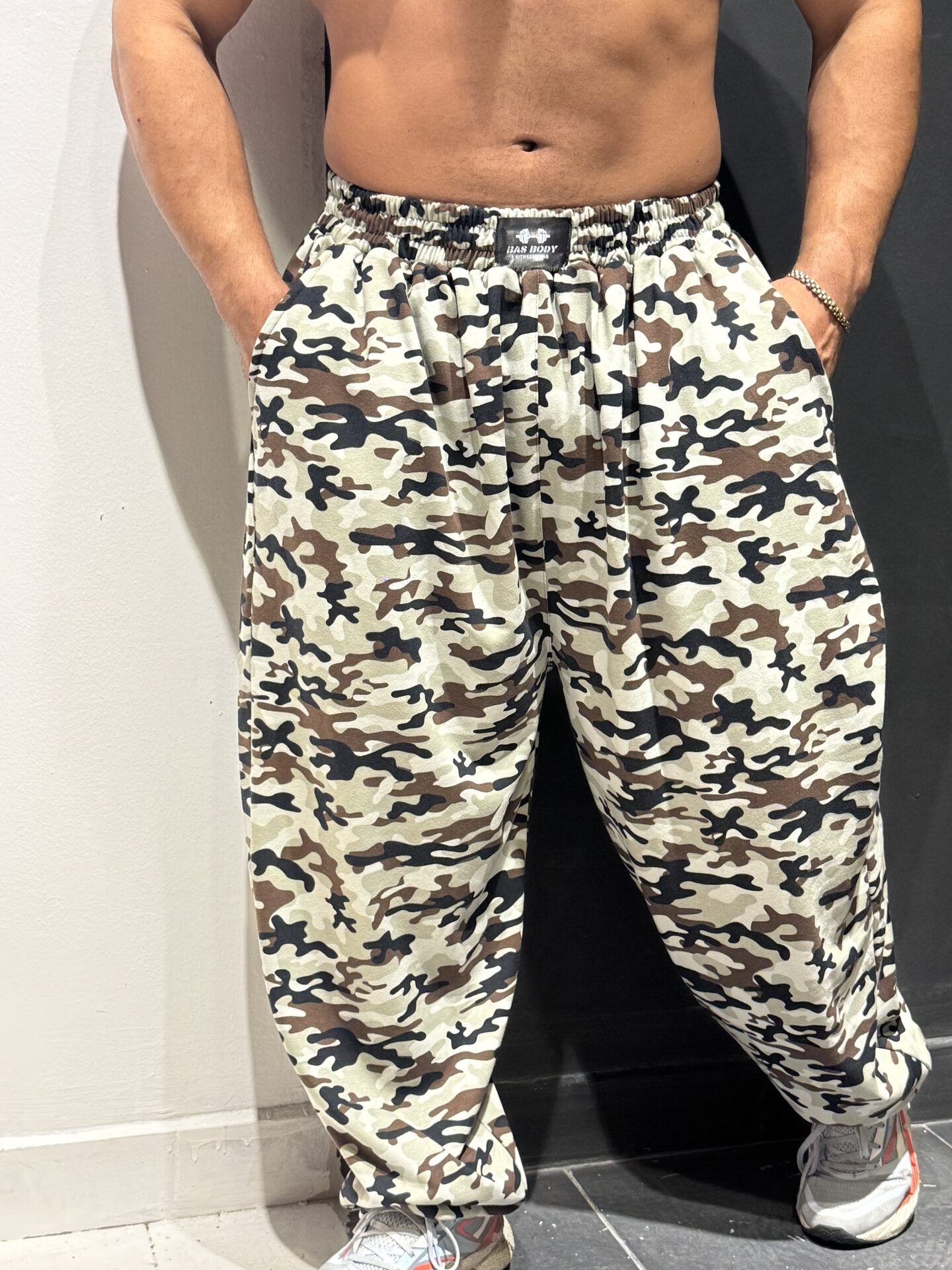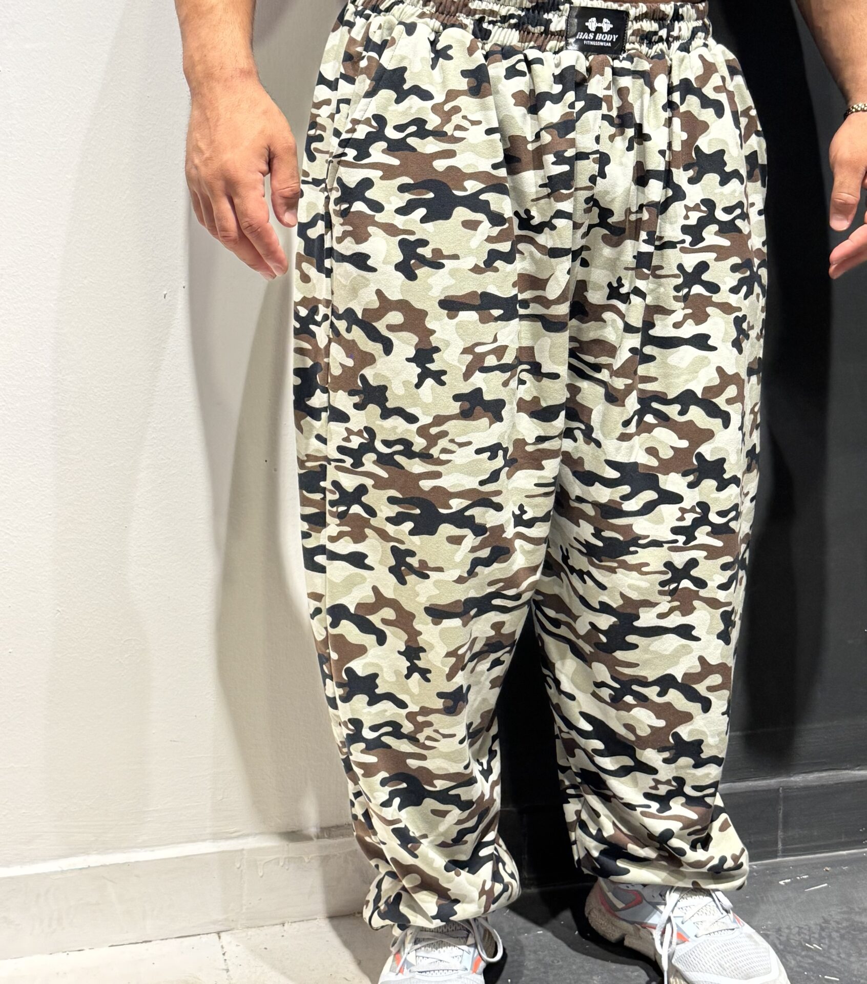 Battal Büyük Beden Beyaz Kamuflaj Derin Cep Eşofman