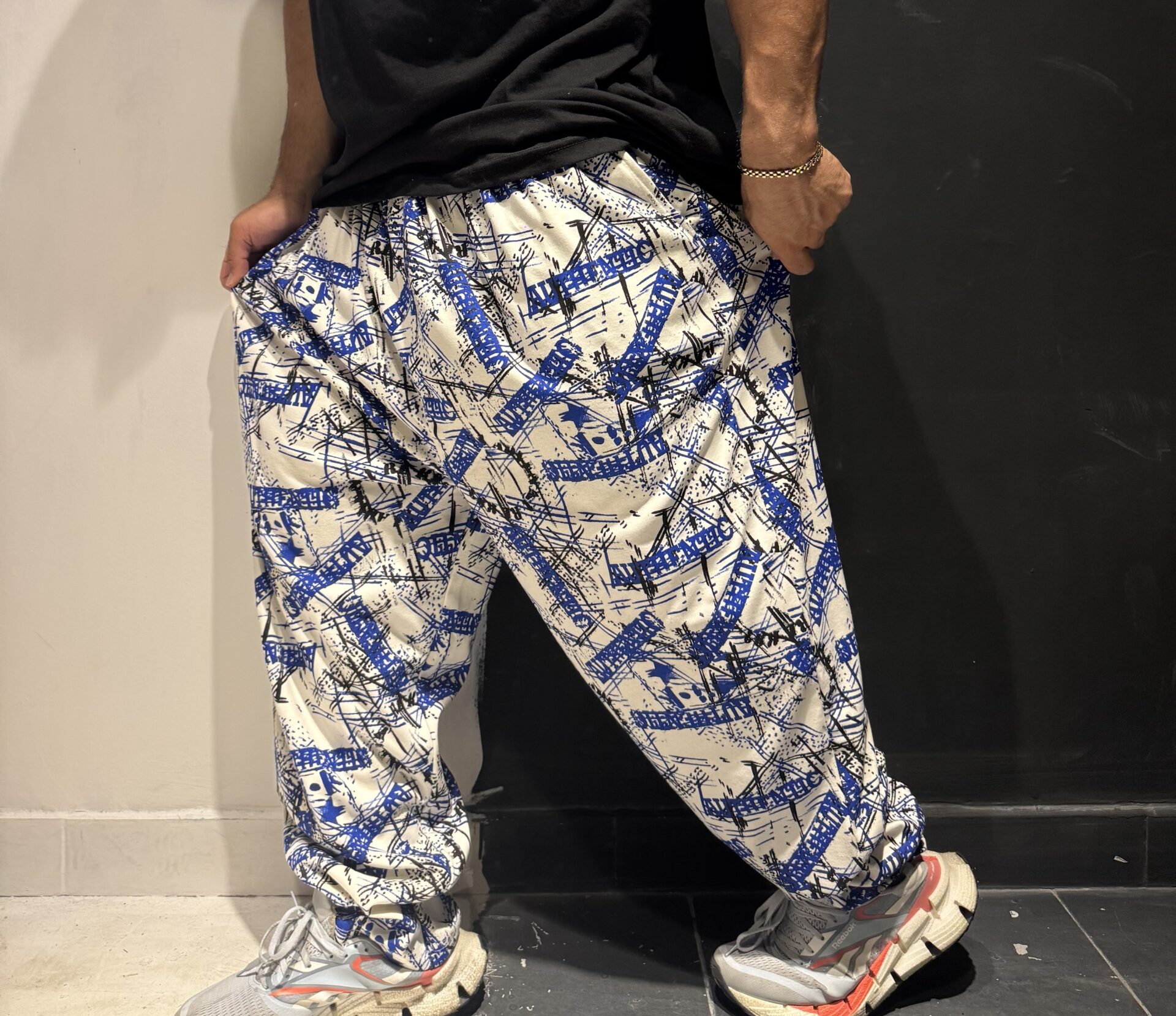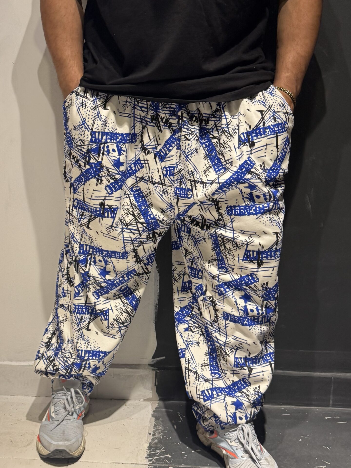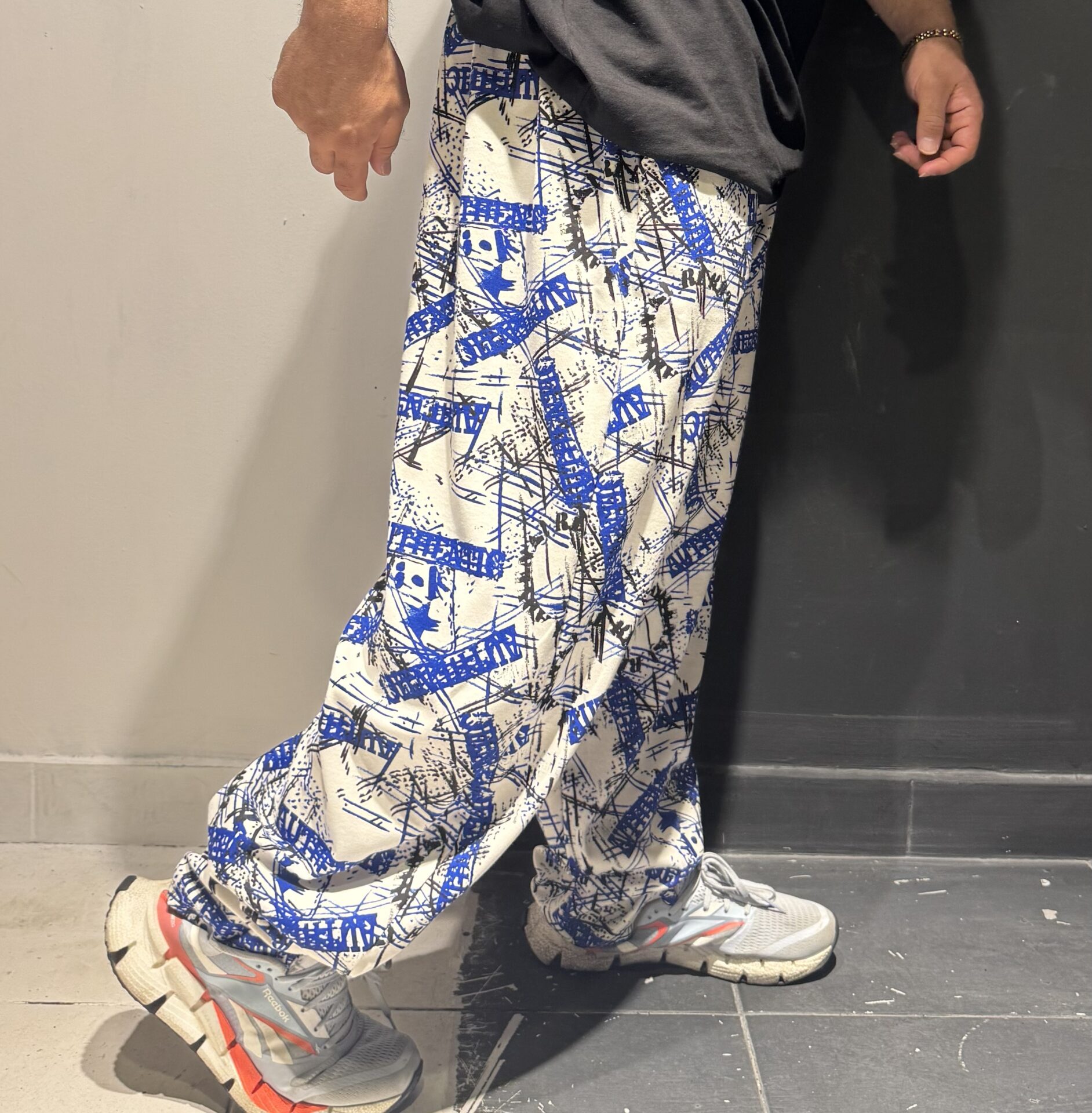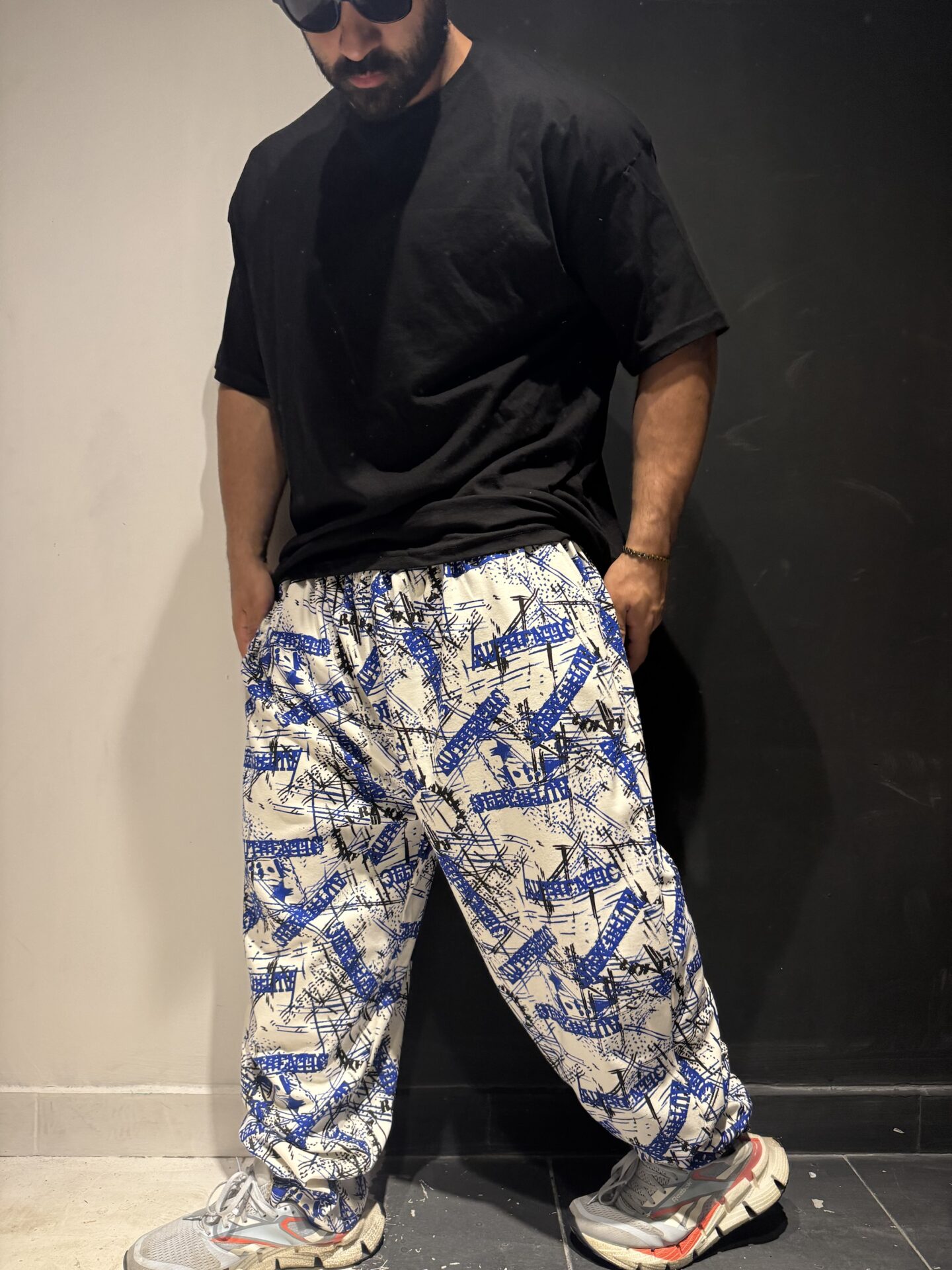 Battal Mavi Graffit Bol Esnek Çift Cep Eşofman Altı