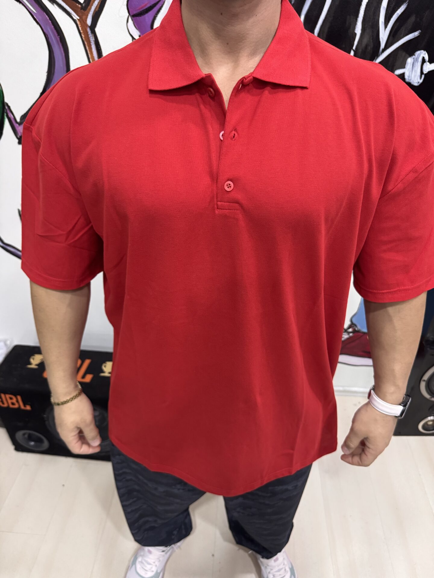 Battal Polo Yaka Büyük Beden Kırmızı Premium Kalite %100 Pamuk