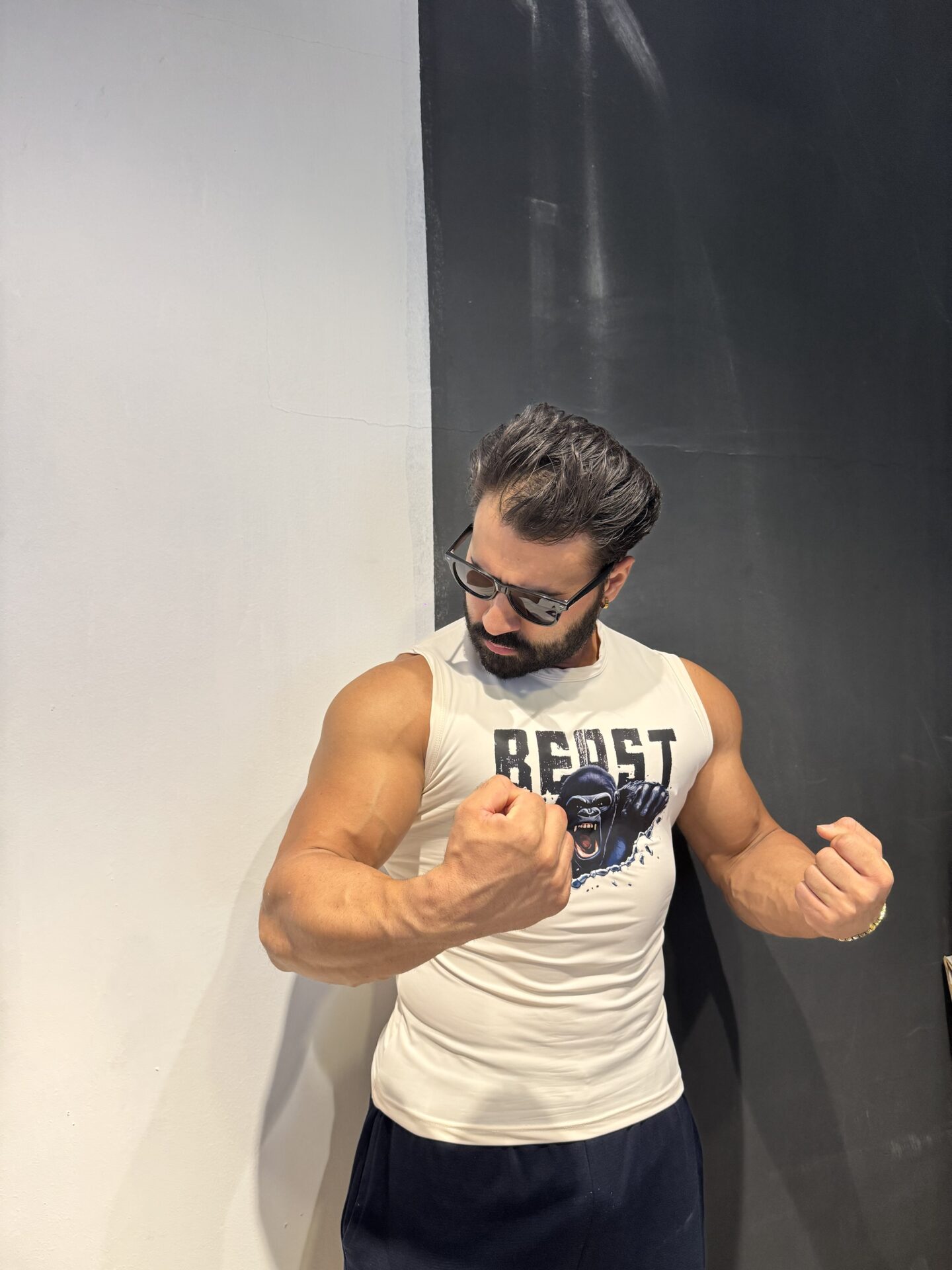 Beast Baskılı Compression Atlet Açık Krem Rengi Basarken Gaza Getirir 💪