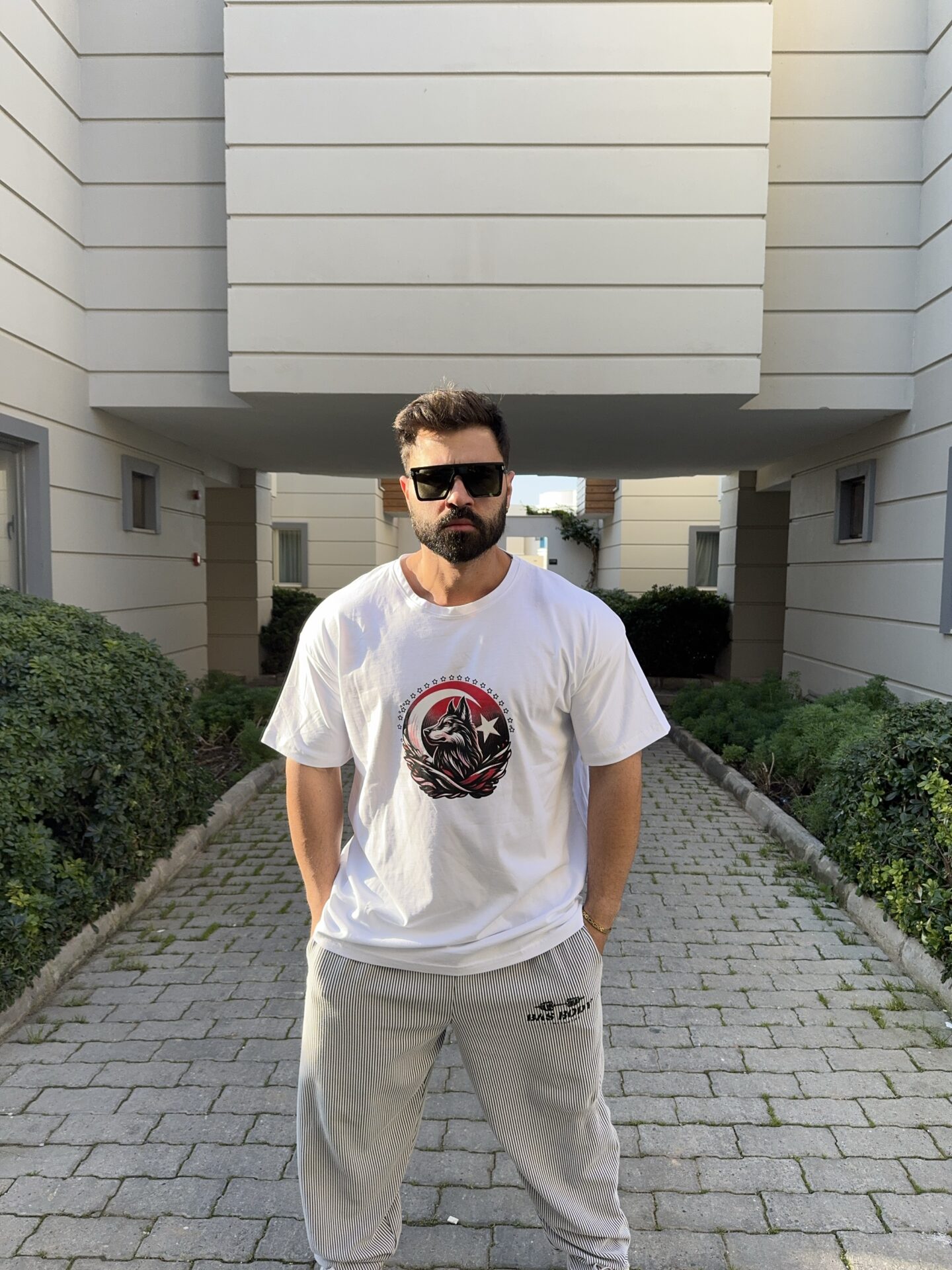 Bozkurt Turan Baskılı Oversize Tişört Beyaz ve Siyah Seçenekli %100 Pamuk