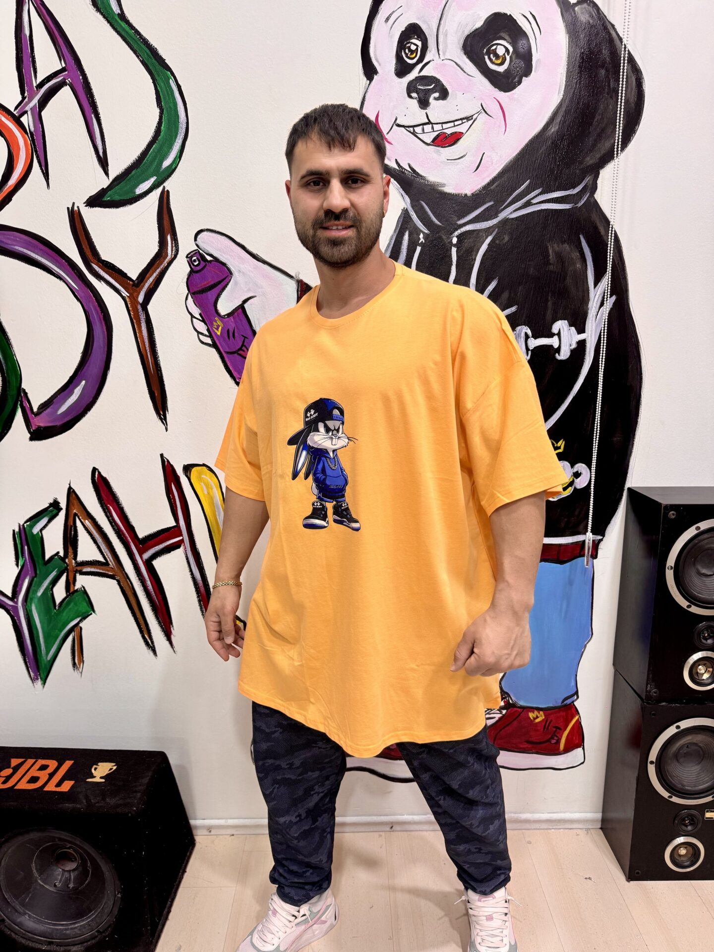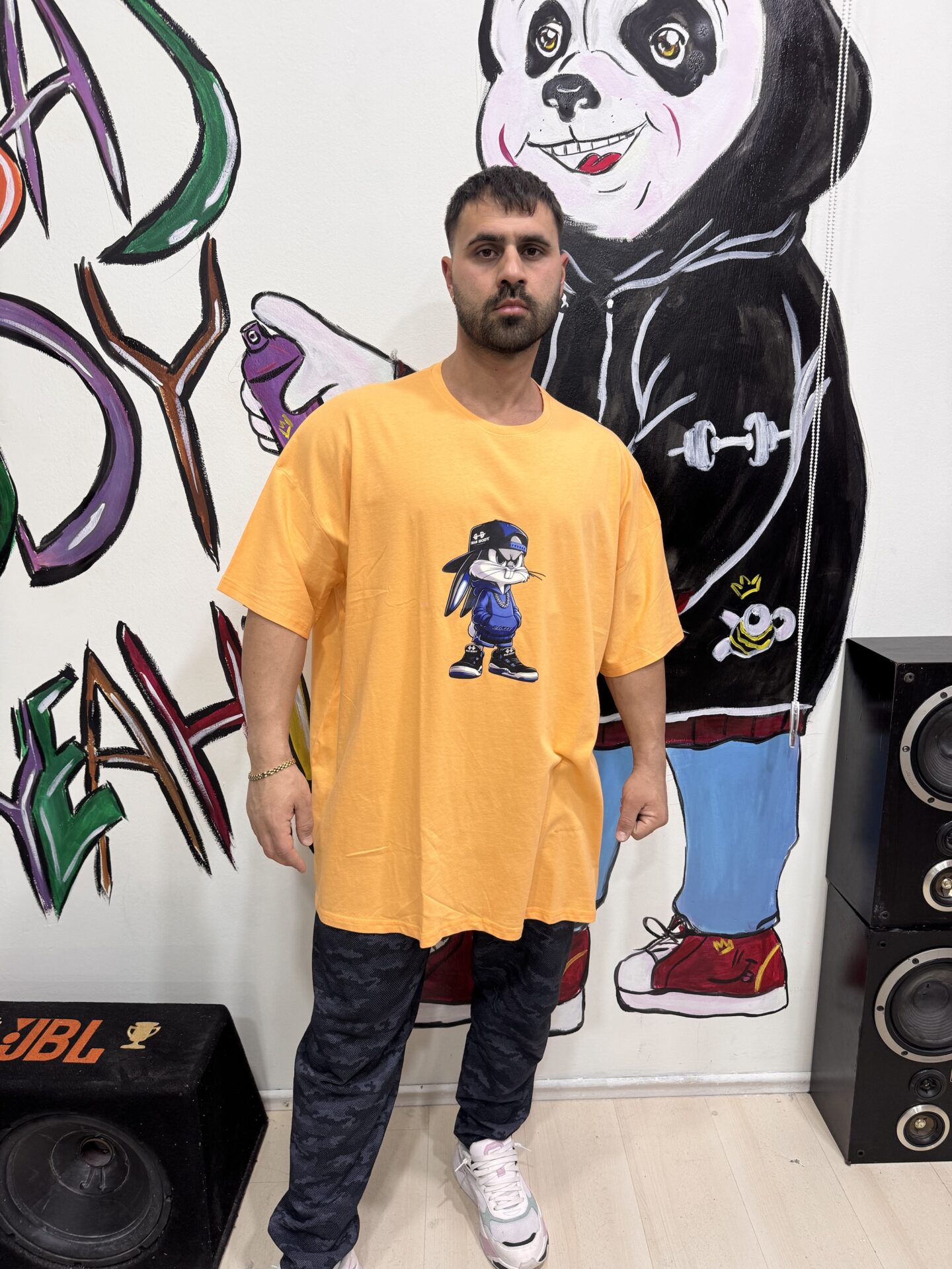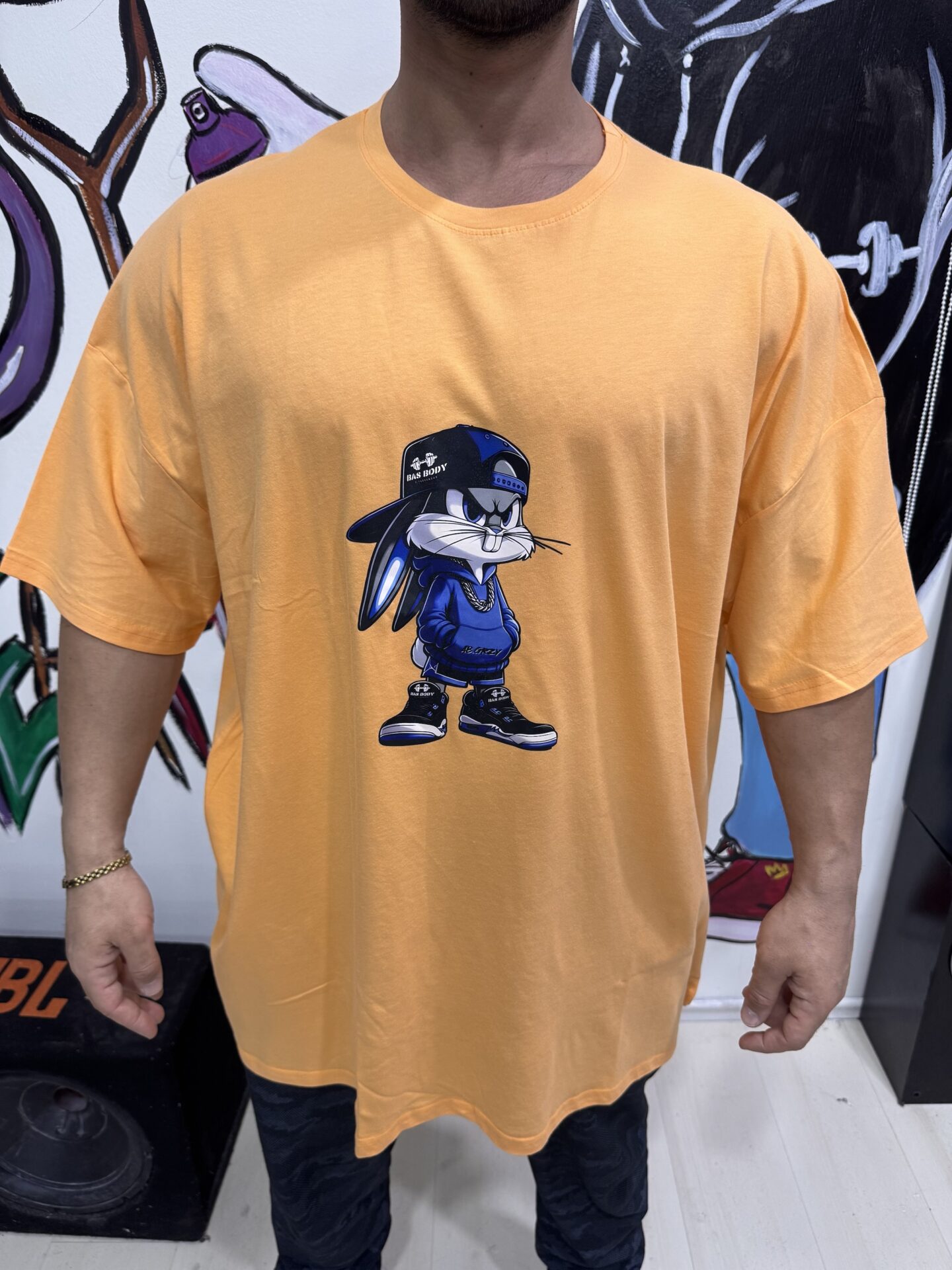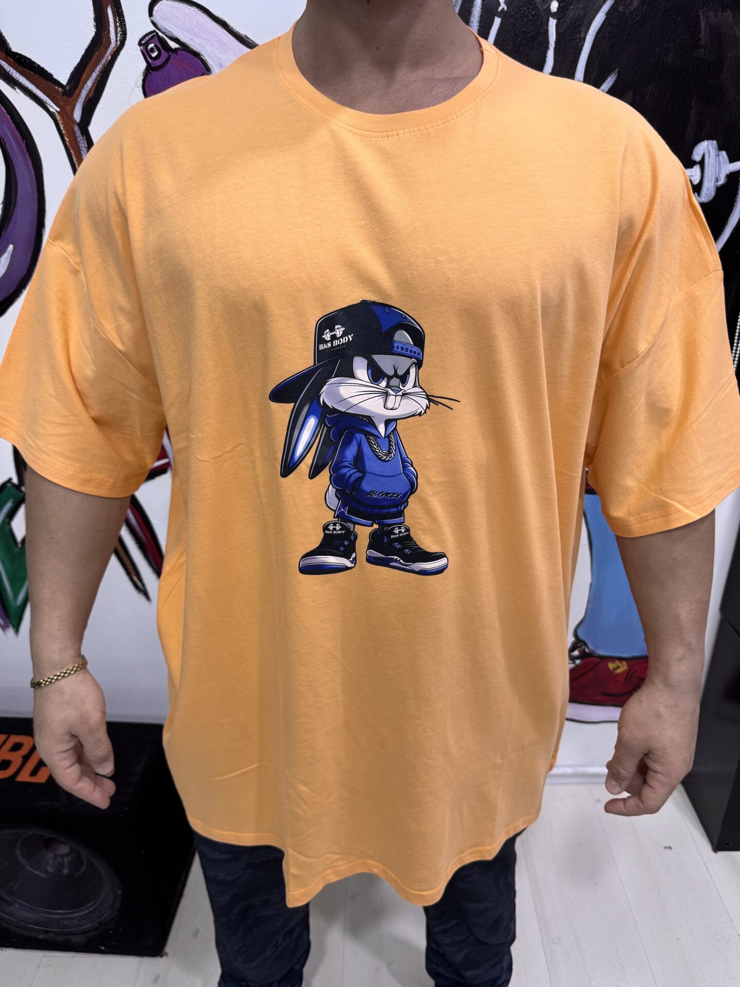 Büyük Beden Bas Body Bugs Bunny Baskılı Turuncu Bisiklet Yaka Kısa Kol Tişört