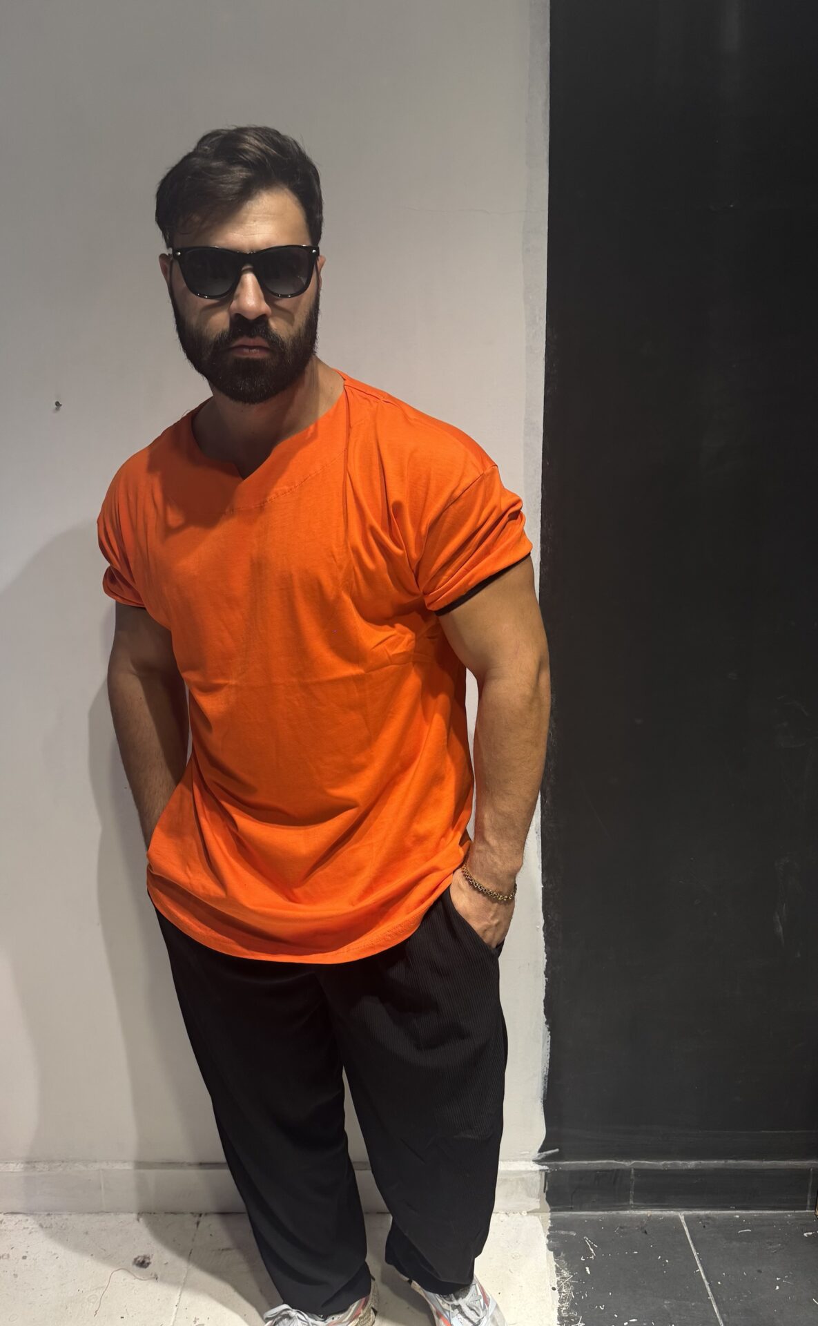 Etiketler: baskısız, dar kol, oversize, turuncu