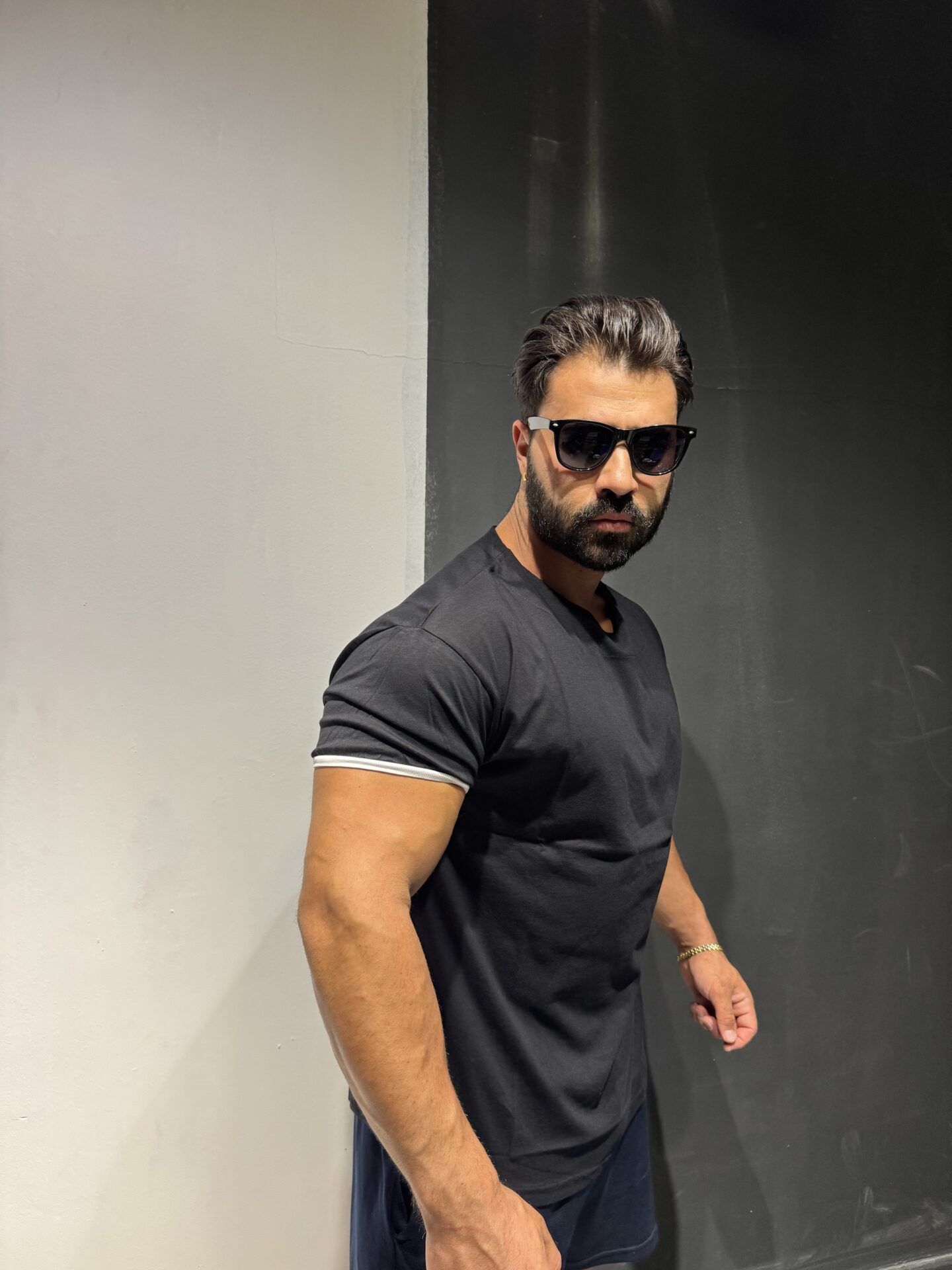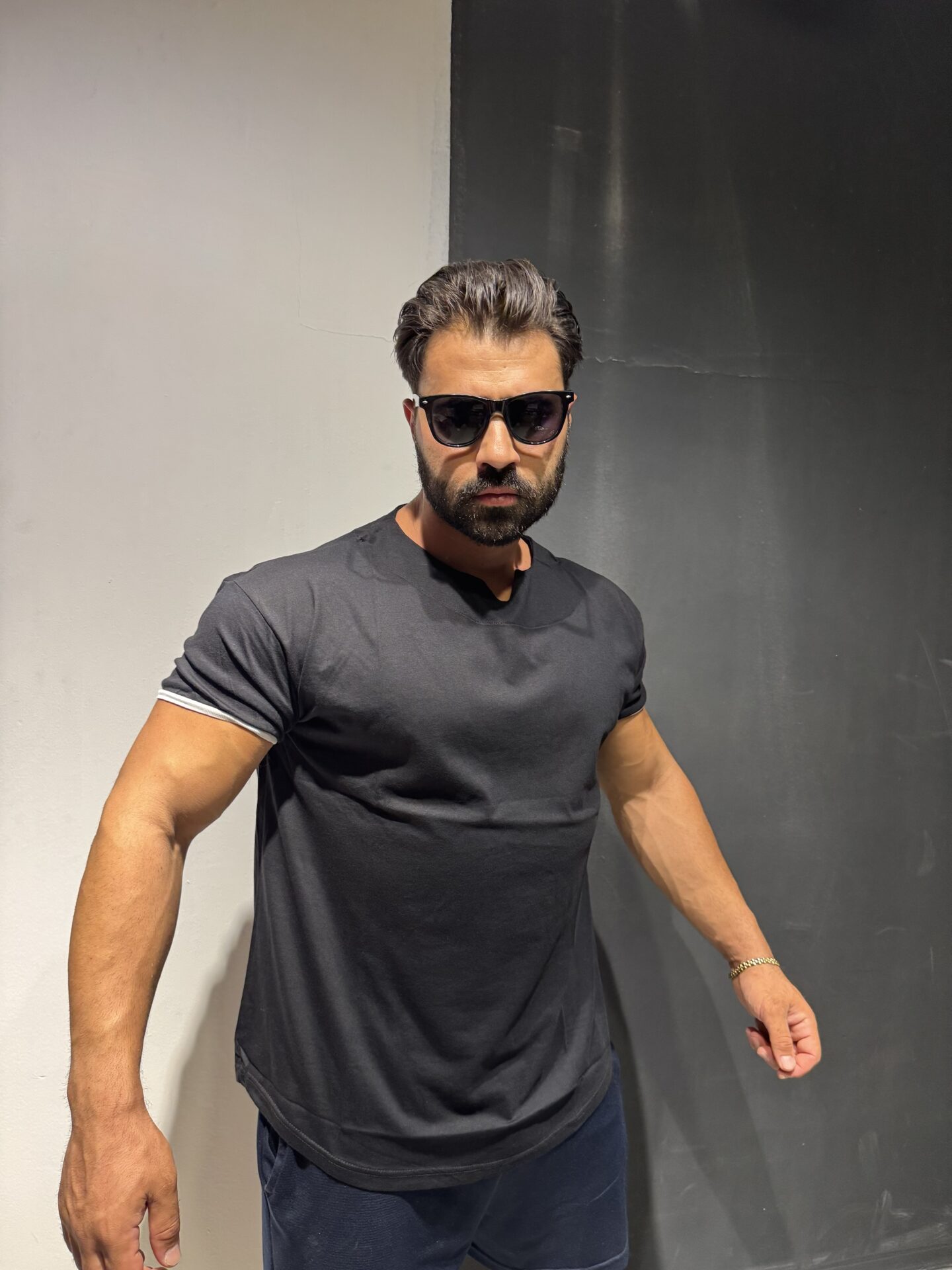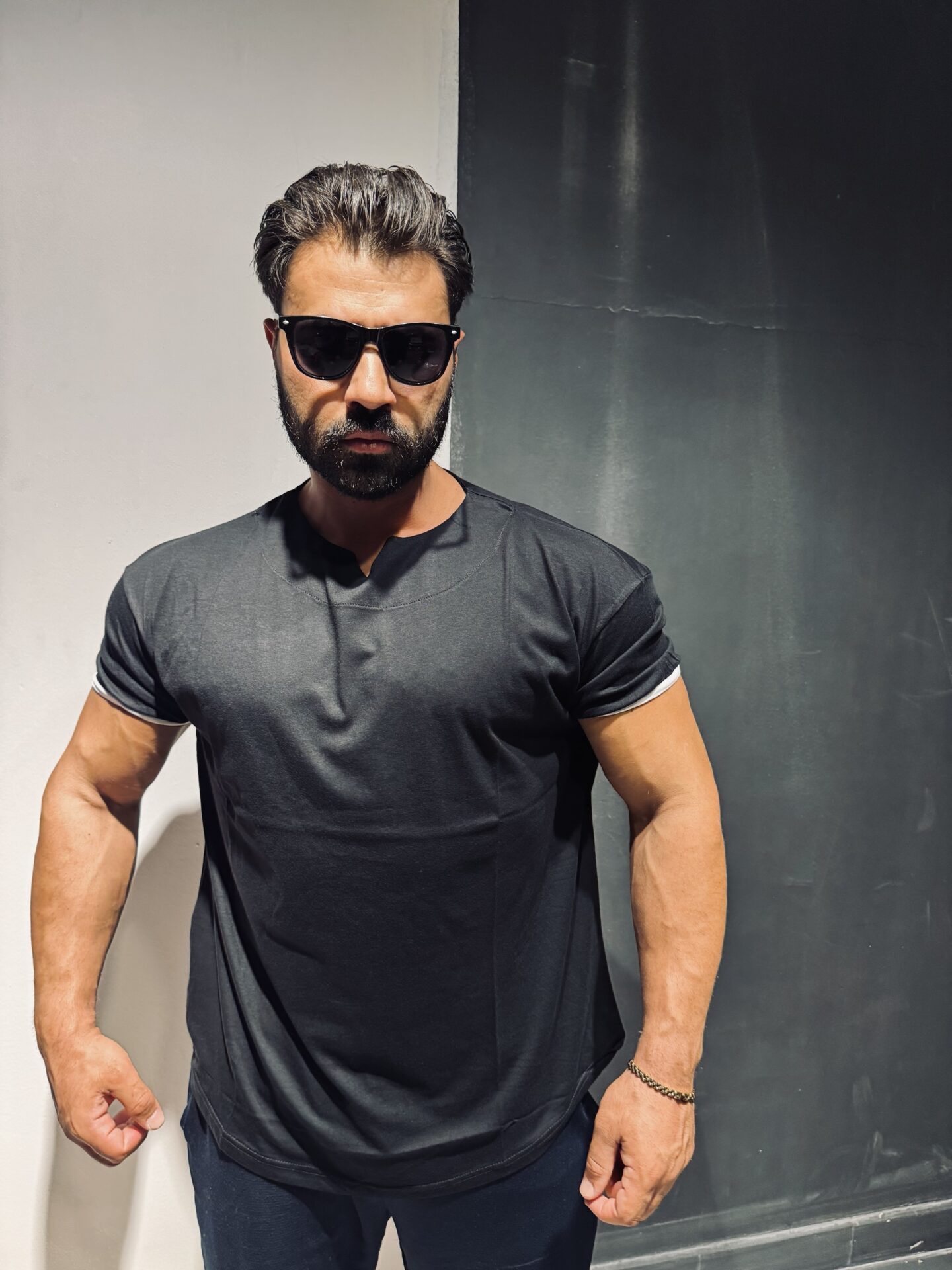 Düz Siyah Baskısız Dar Lastikli Kol Oversize Tişört