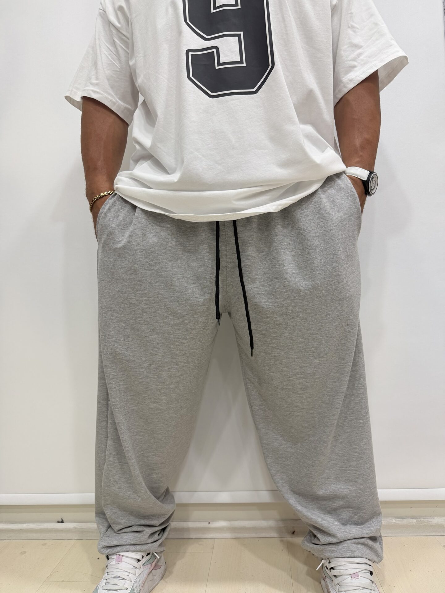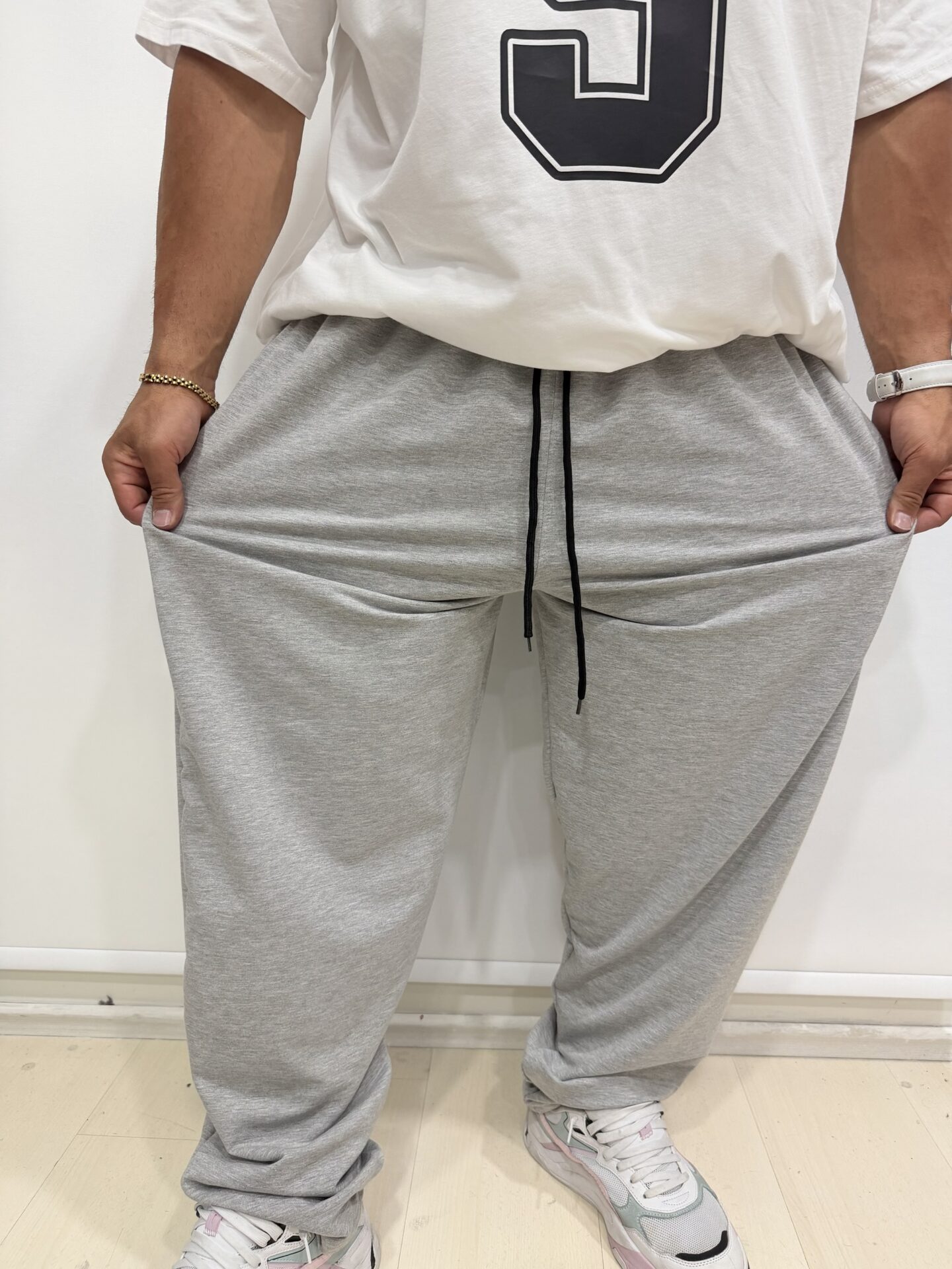 Gri 2 İplik Pamuklu Esnek Yumuşak Kumaş Eşofman Alt Derin Cepli Bel İpli
