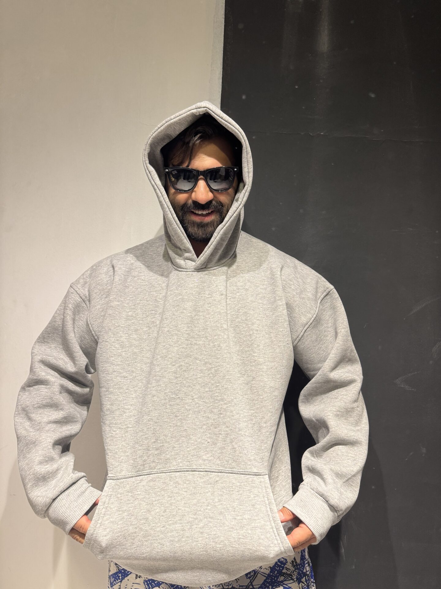 Gri Battal Beden Kapşonlu Bol Oversize Kesim