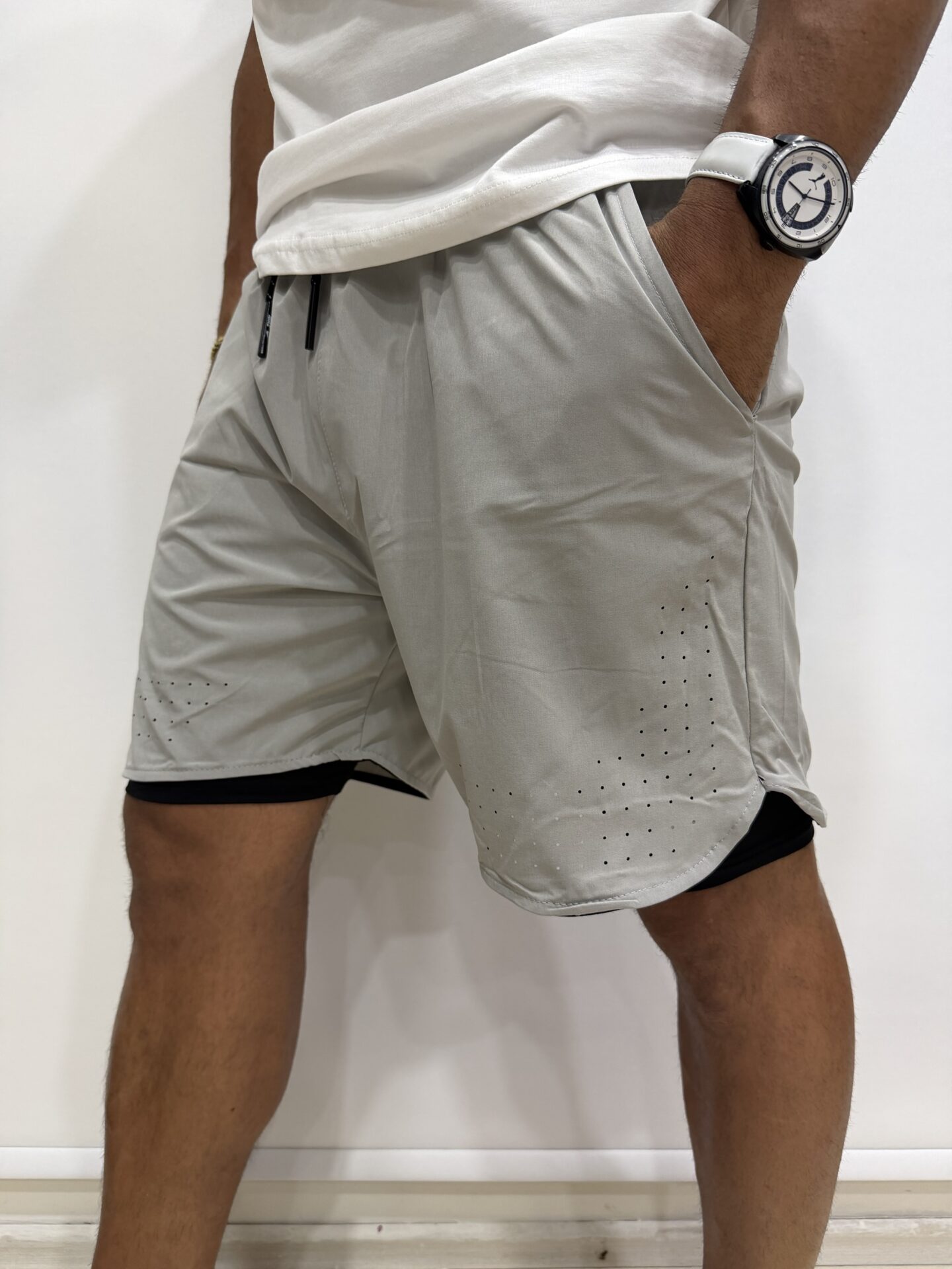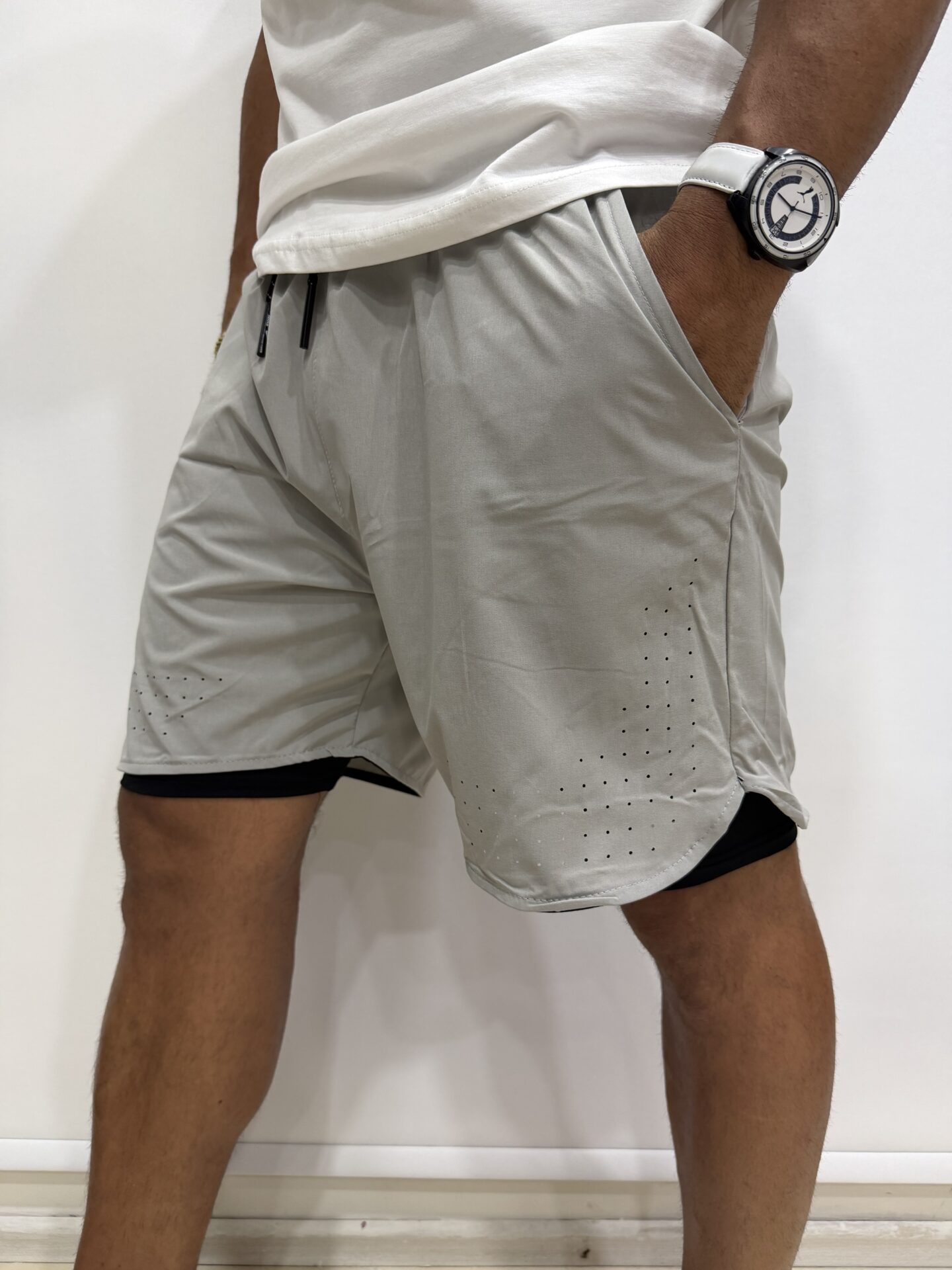 Gri Taytlı Spor Şort Esnek ve 3 Cepli