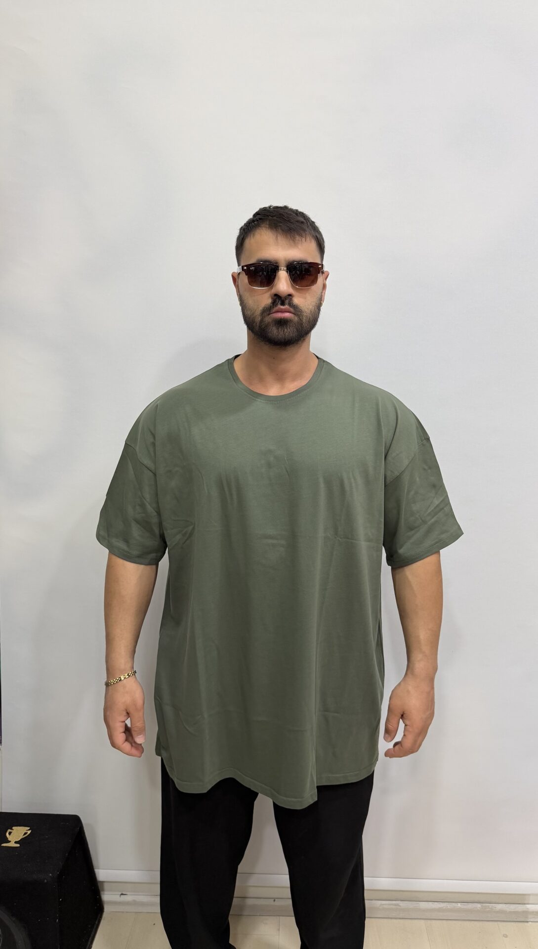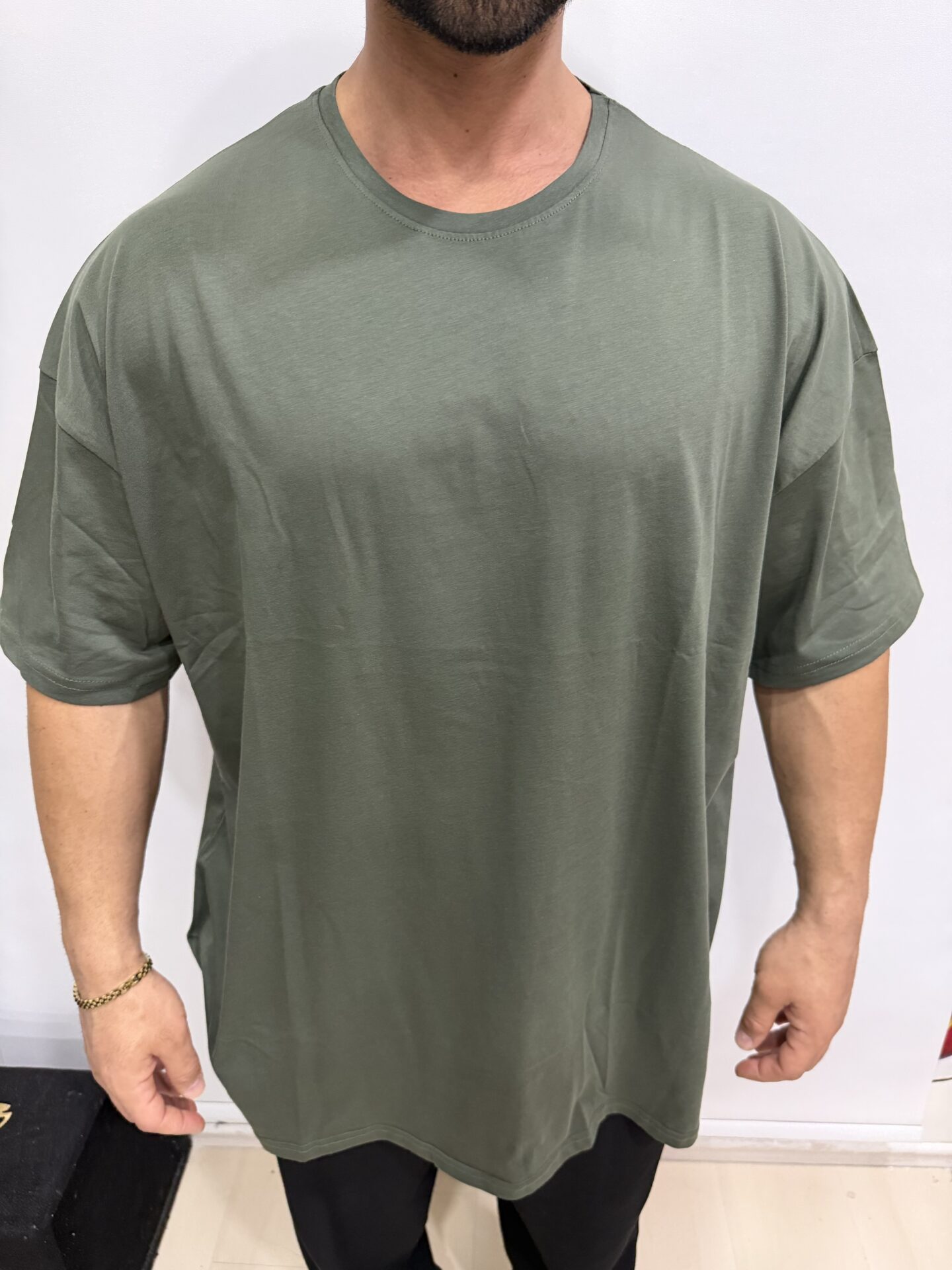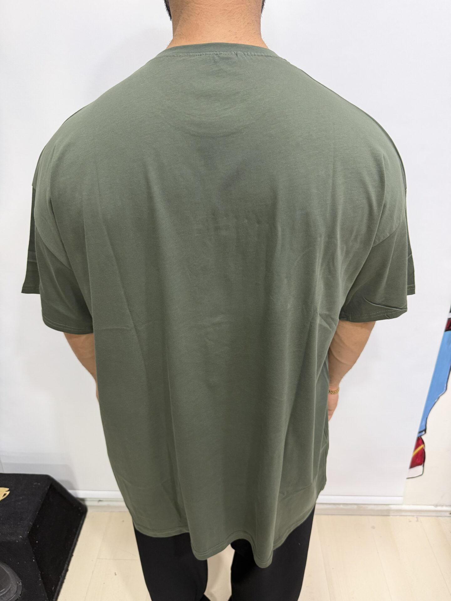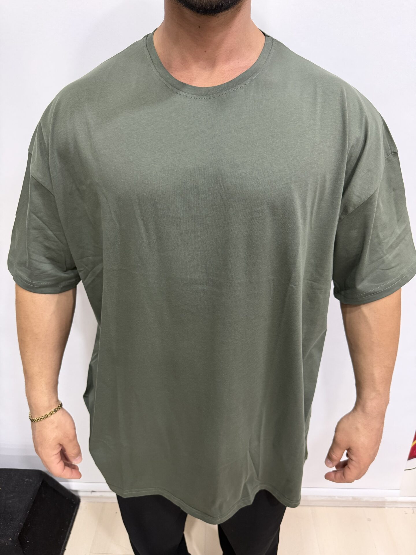 Haki Rengi Baskısız Bisiklet Yaka %100 Pamuk Kısa Kol Basic Tişört