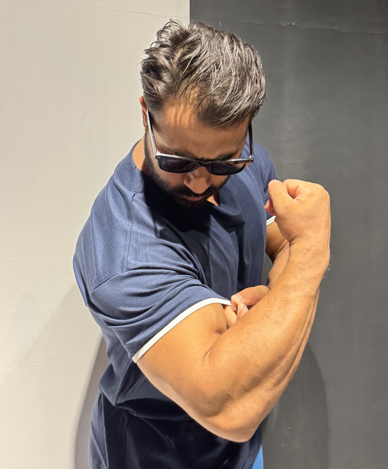 Lacivert Dar Kol Baskısız Oversize Model Tişört Kaslı Gösteren Kollar