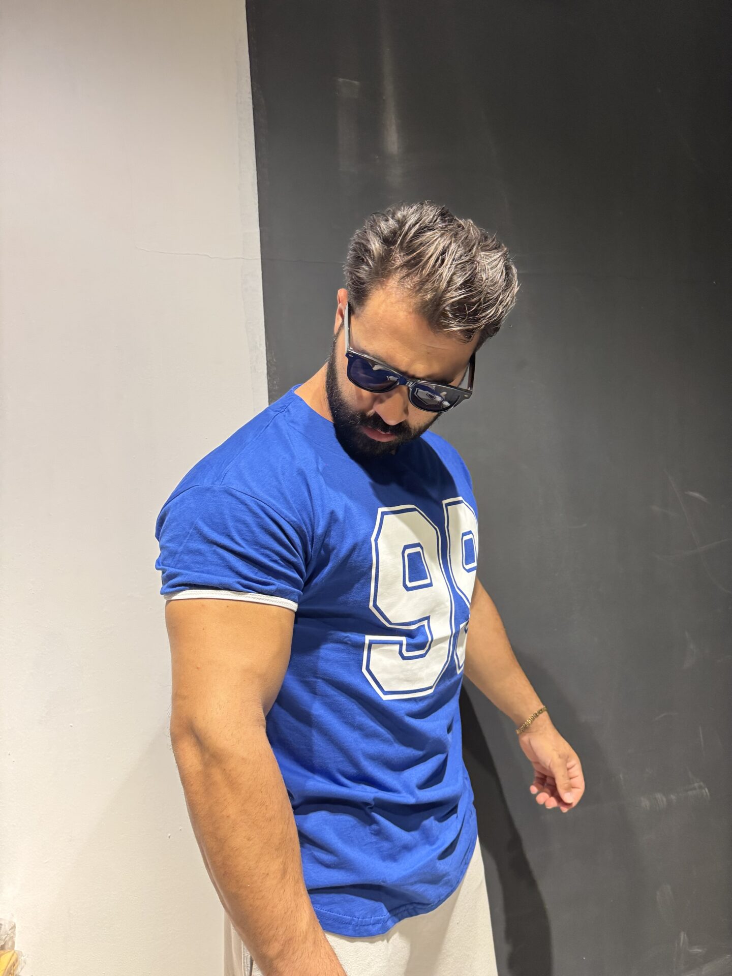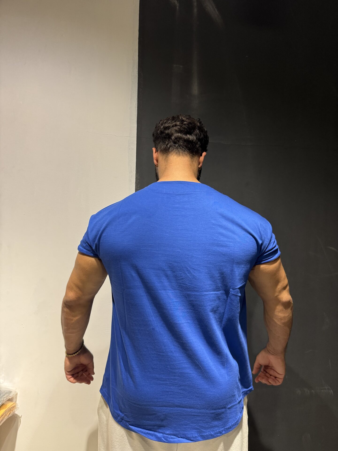 Mavi 99 Baskılı V Yaka Dar Kol Oversize Kesim Fit Görünüm