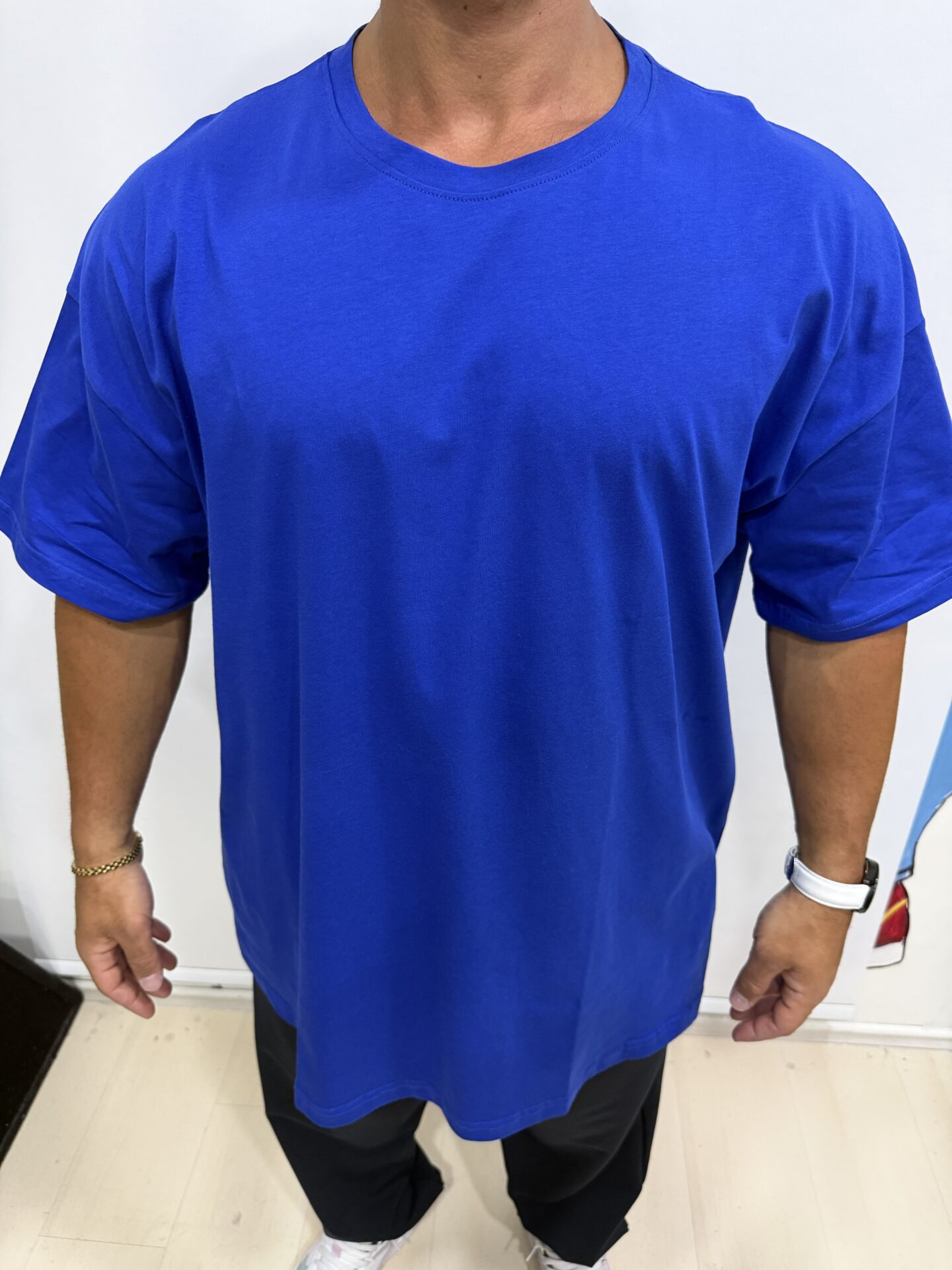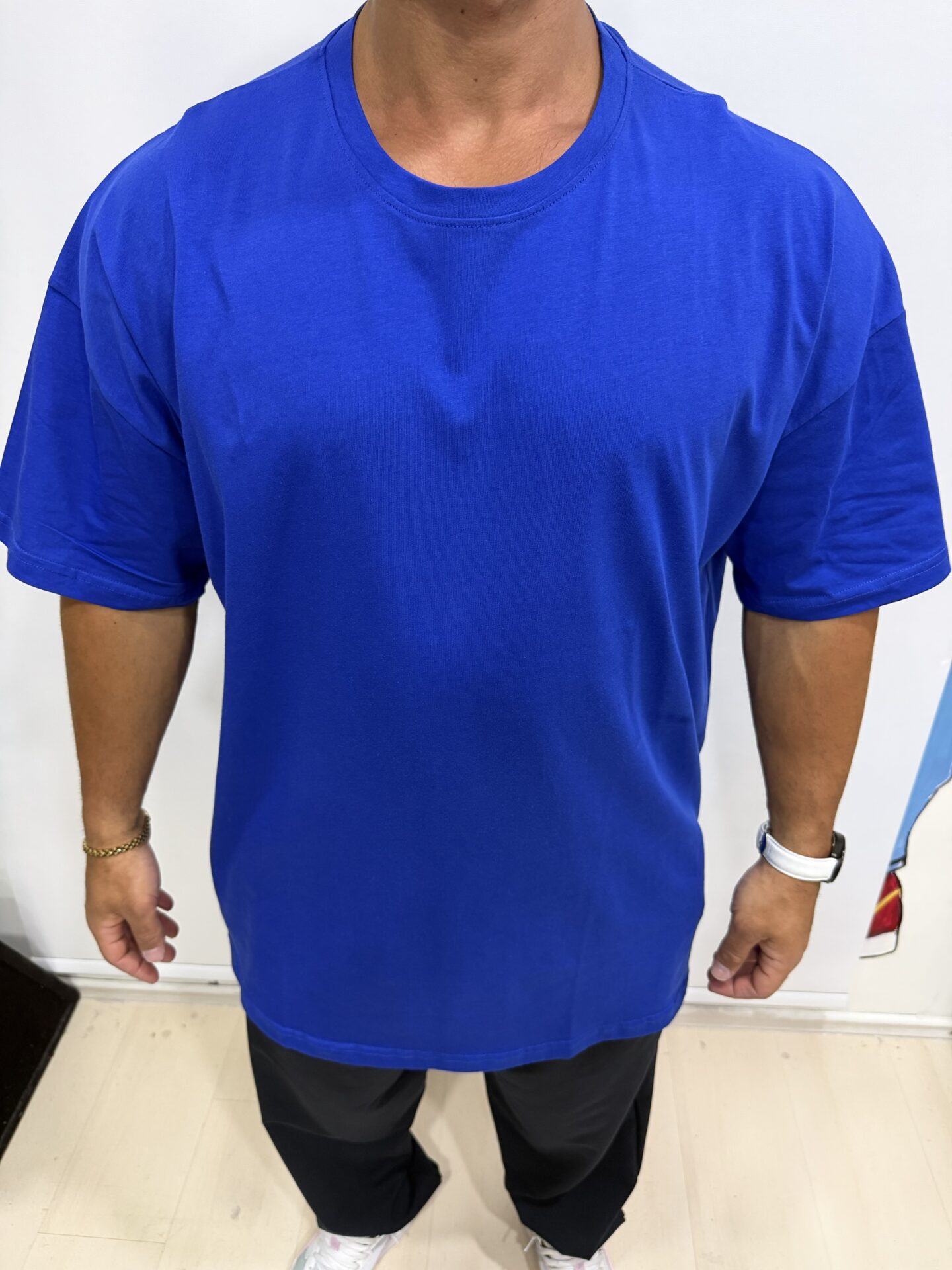 Saks Mavisi Bisiklet Yaka Kısa Kol Battal Büyük Beden %100 Pamuk Tişört