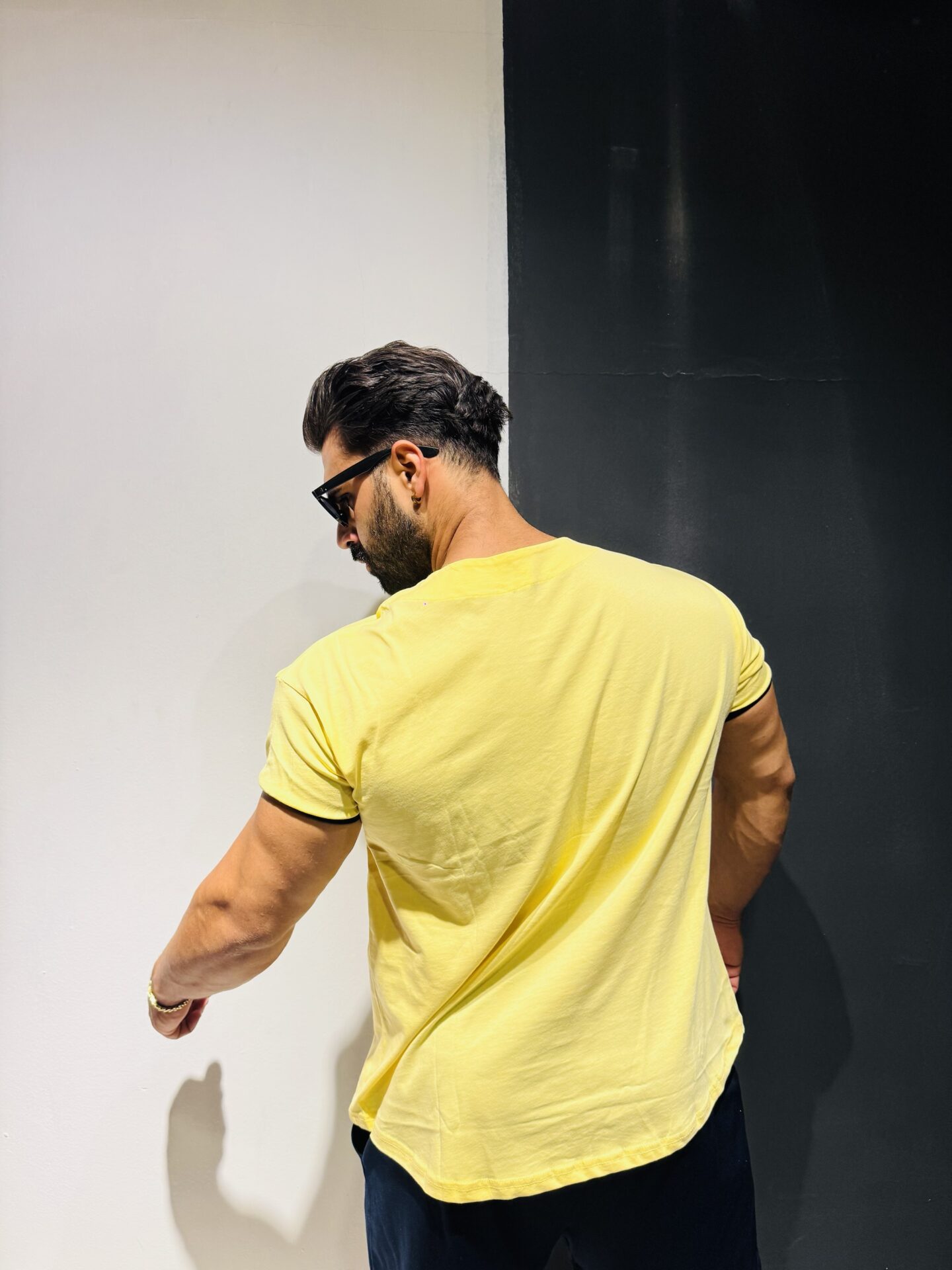 Sarı Yıldız Küçük Baskılı Dar Kol V Yaka Oversize Tişört