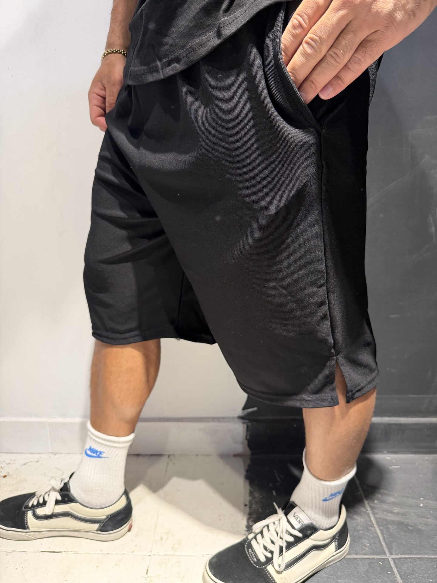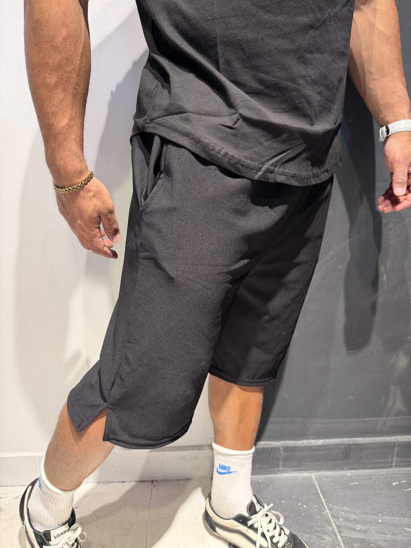 Siyah Basic Baskısız Fitili Kumaş Yazın Favorisi Derin Cepli Ve Yırtmaçlı Derin Cepli Kapri