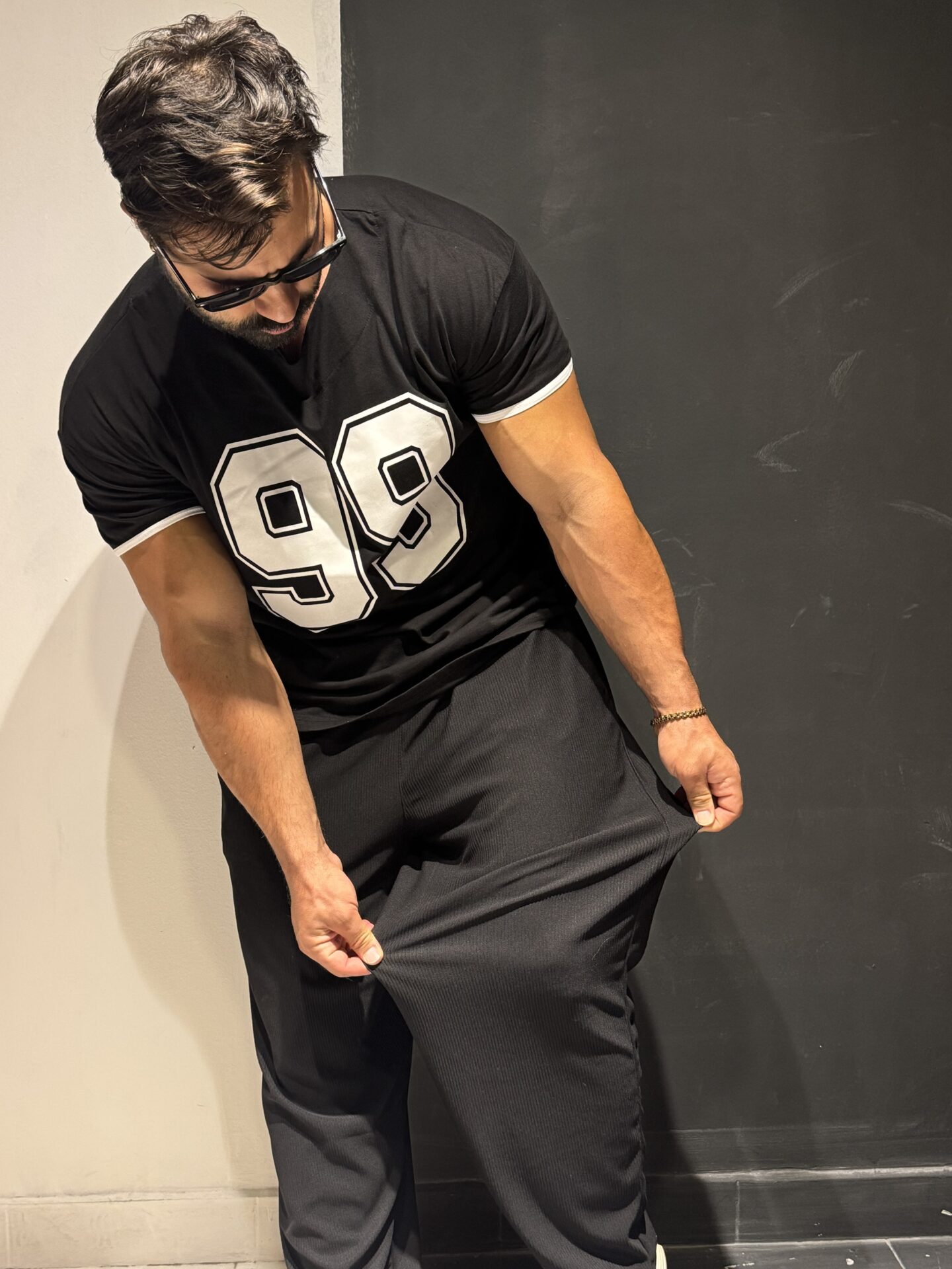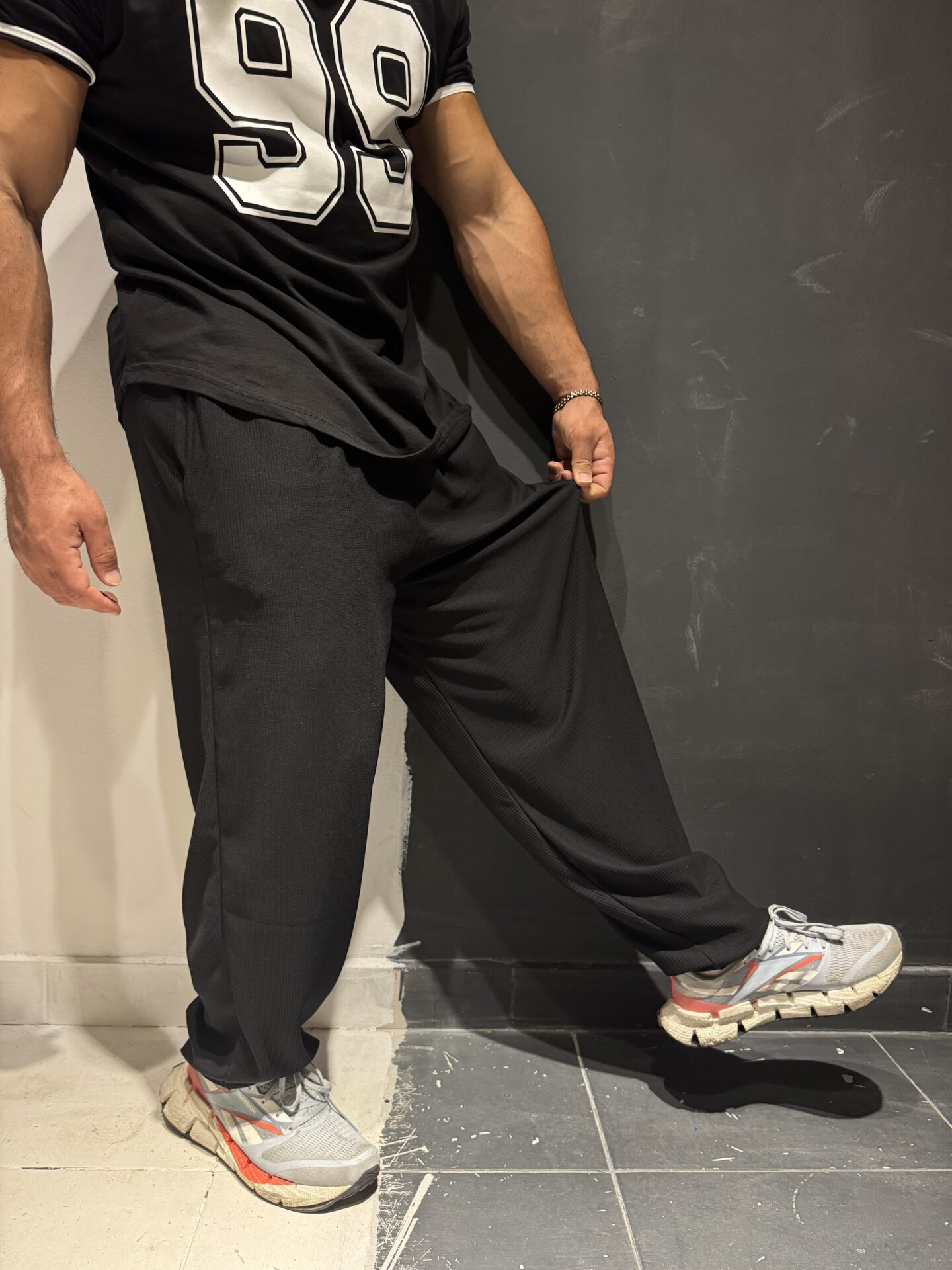Üst dar kol oversize kesim siyah ile alt eşofman uyumu ile bu kombini spordan sonrada çıkaramayacaksın bodyy😉